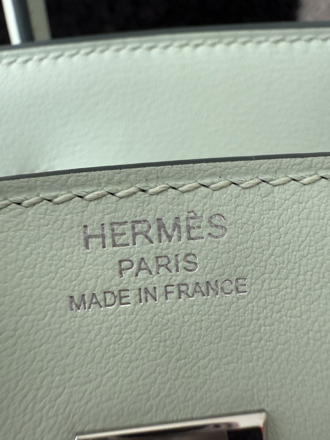 Birkin 25cm Platinum Swift Leather Green Mint Handbag