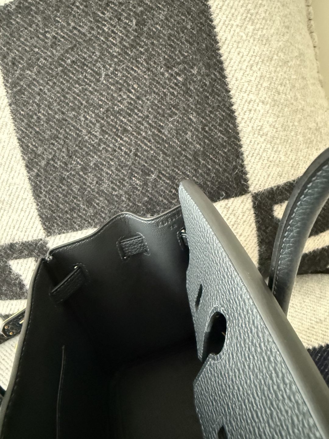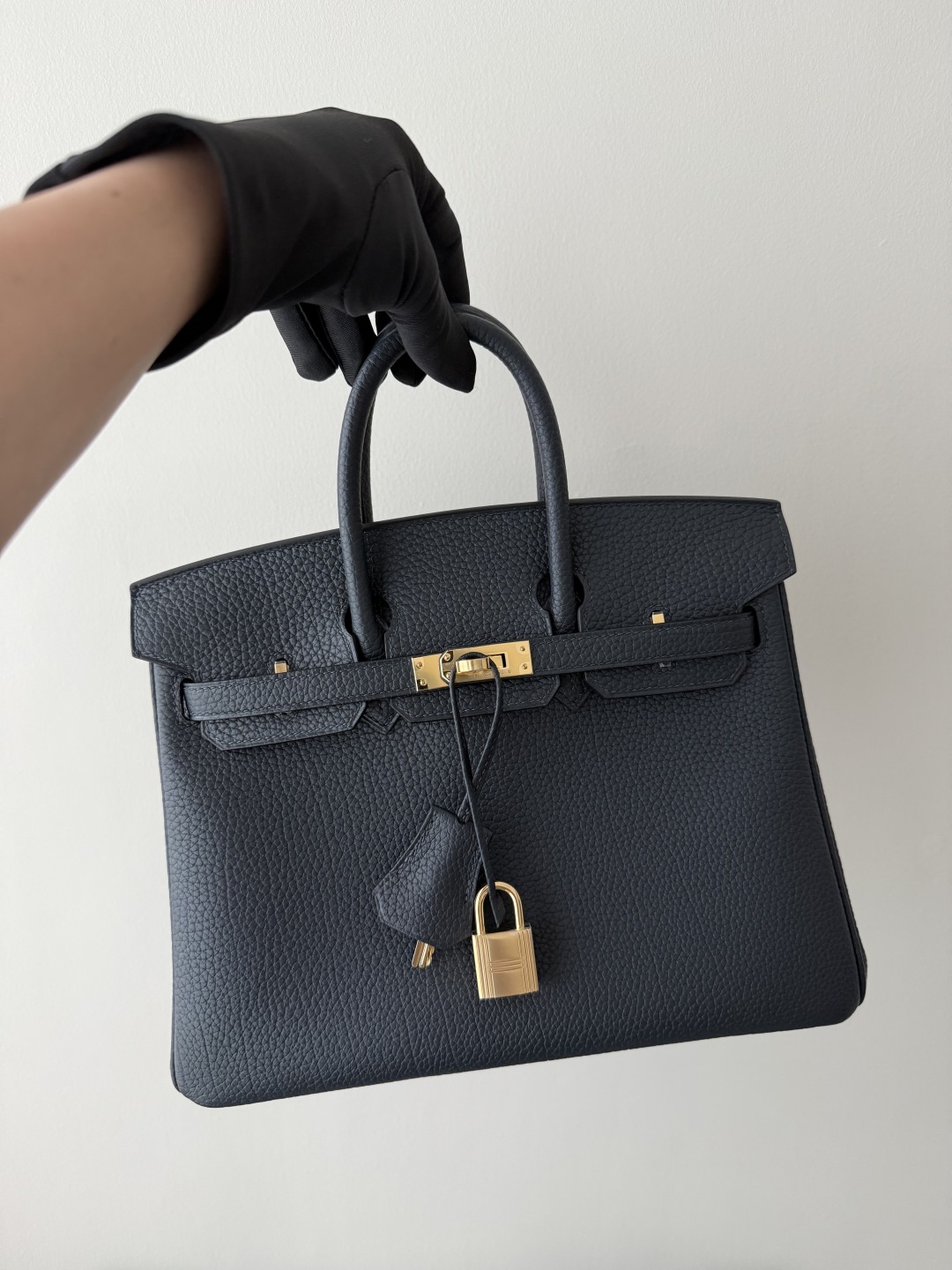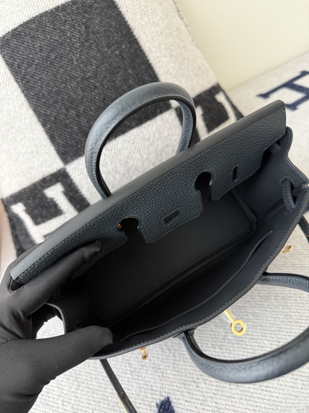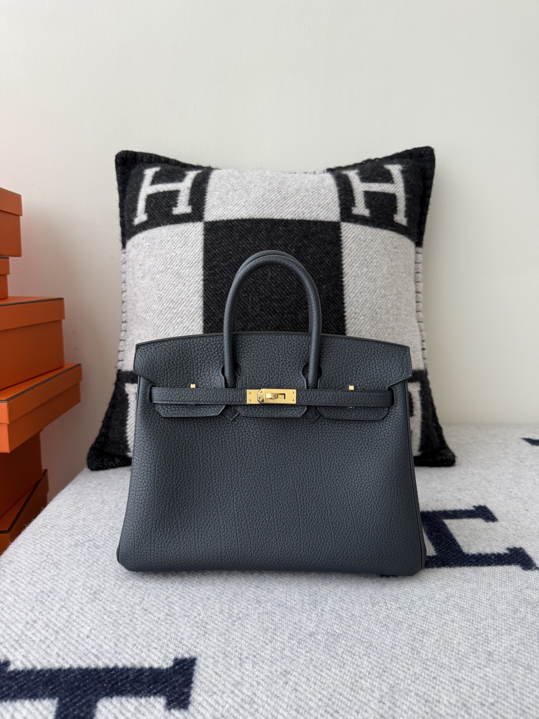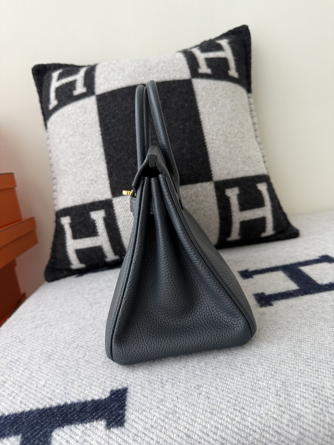 Birkin 25cm Togo Leather Bag - Midnight Blue with Gold Buckle