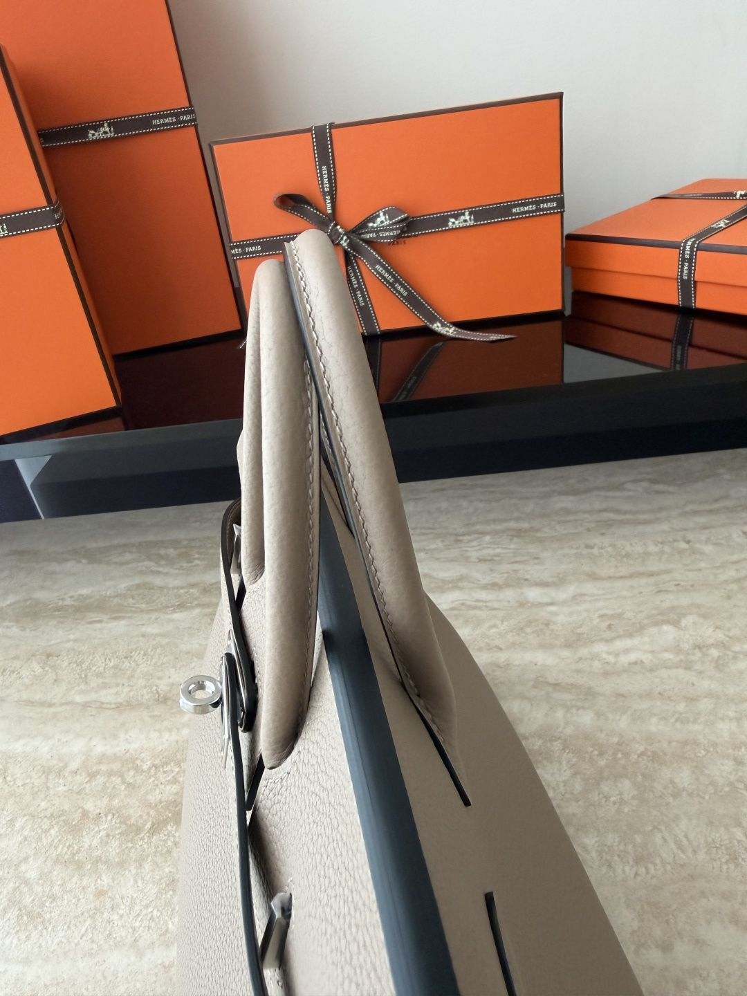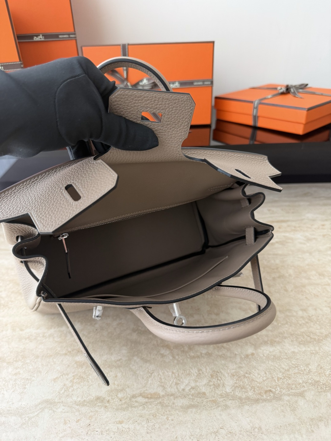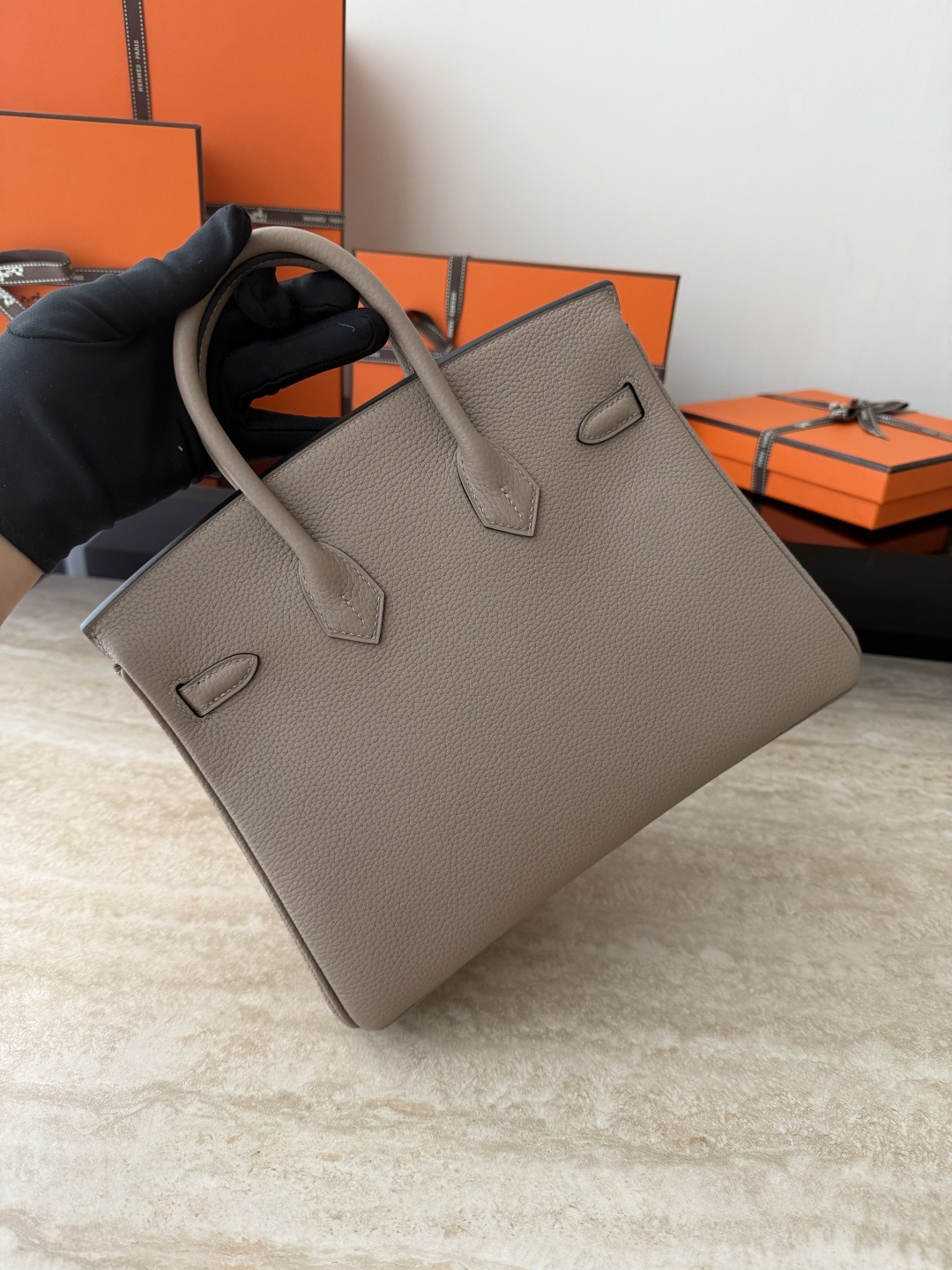 Birkin 25cm Togo Leather Handbag CK81 Gris Tourterelle
