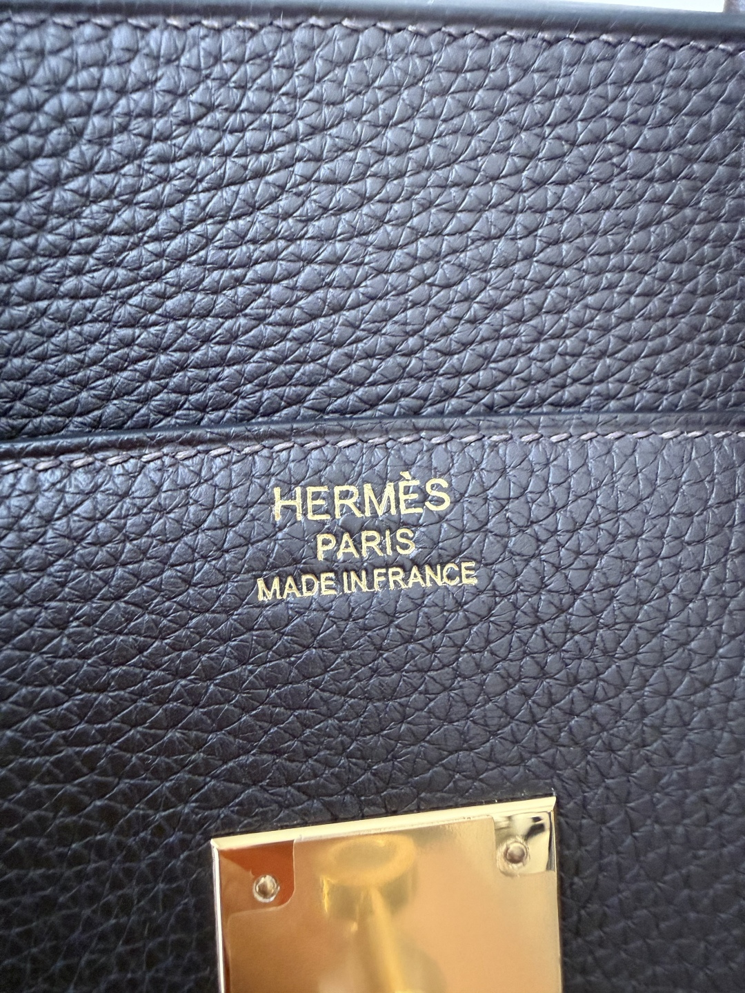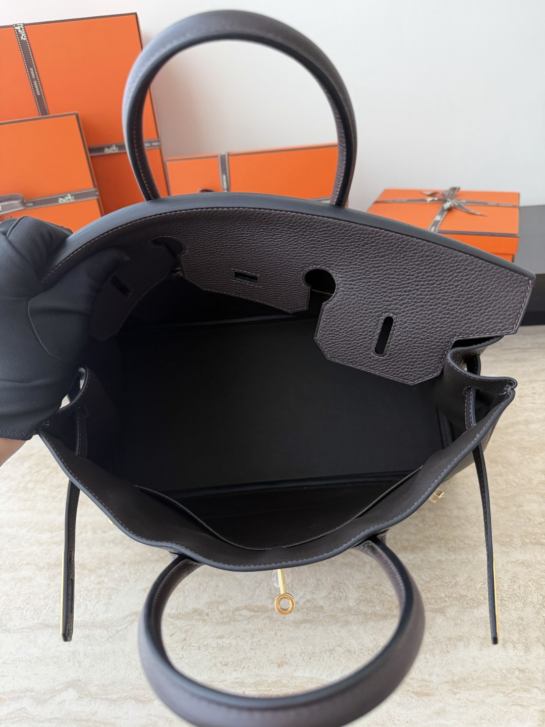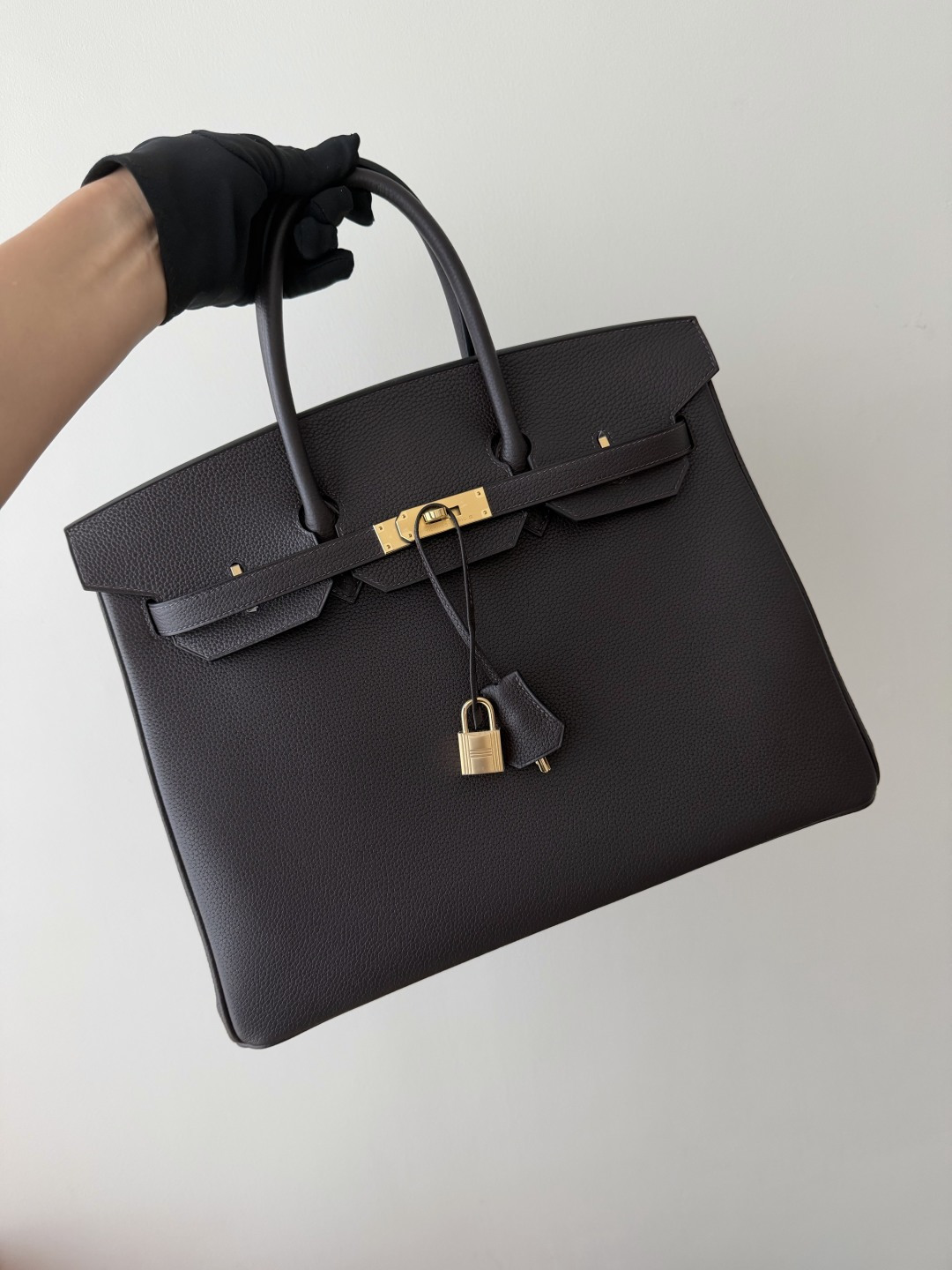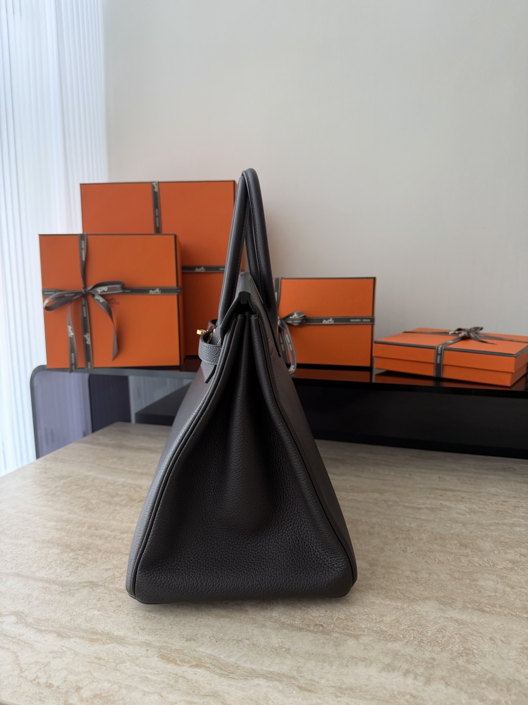 Birkin 35cm Togo Leather Handbag - CC46 Ebene Color with Gold Hardware