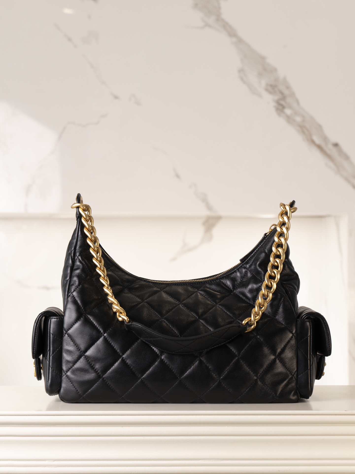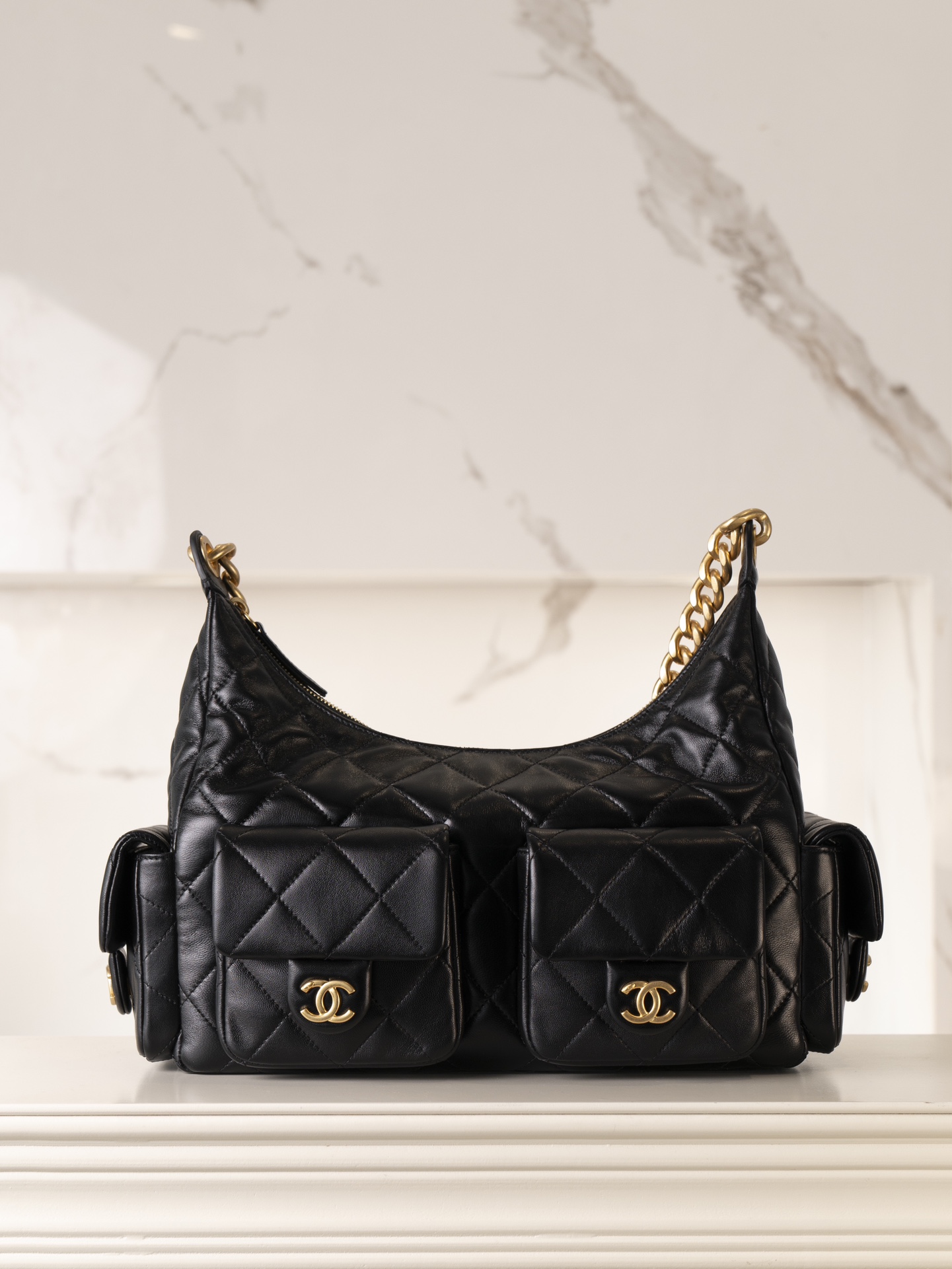 CHANEL 25cm Hobo Bag Black Gold