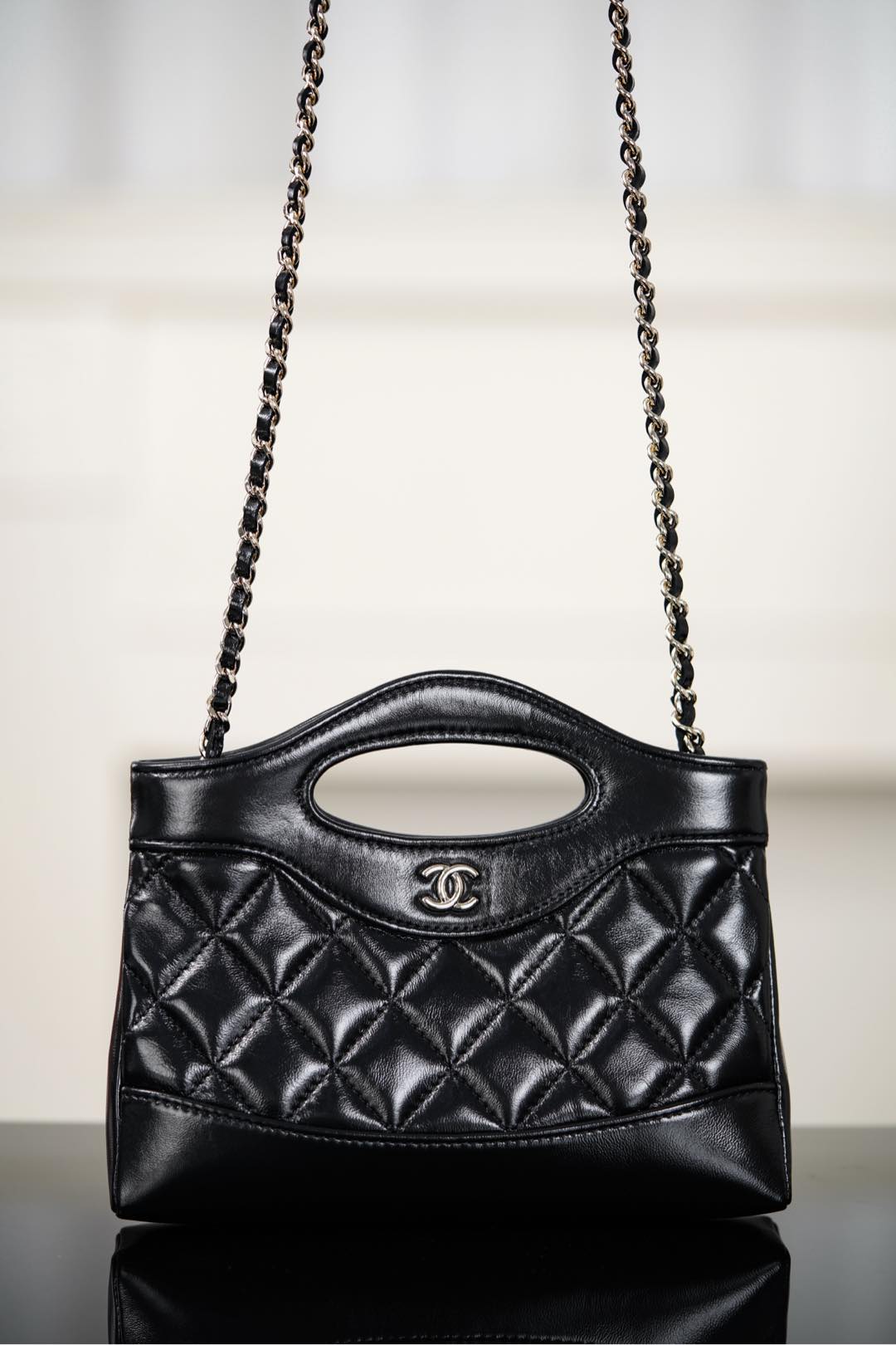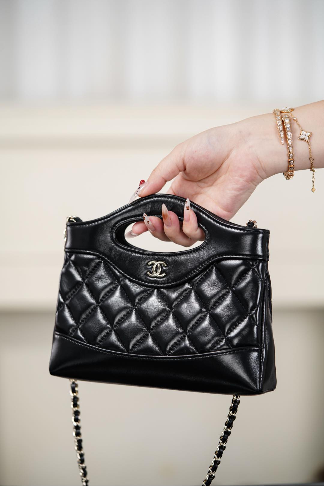 Chanel 25P 31Bag Nano Black Gold Leather