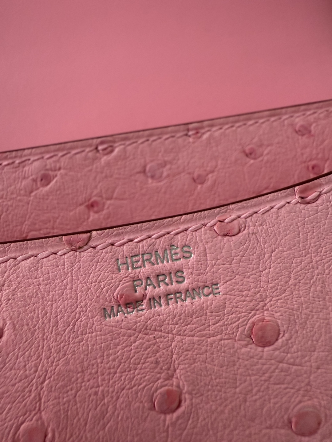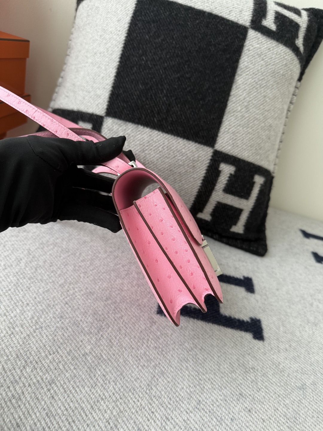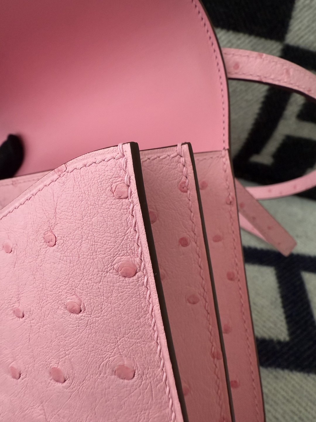 Constance 18cm Bubble Gum Color Mirror with Original Ostrich Leather