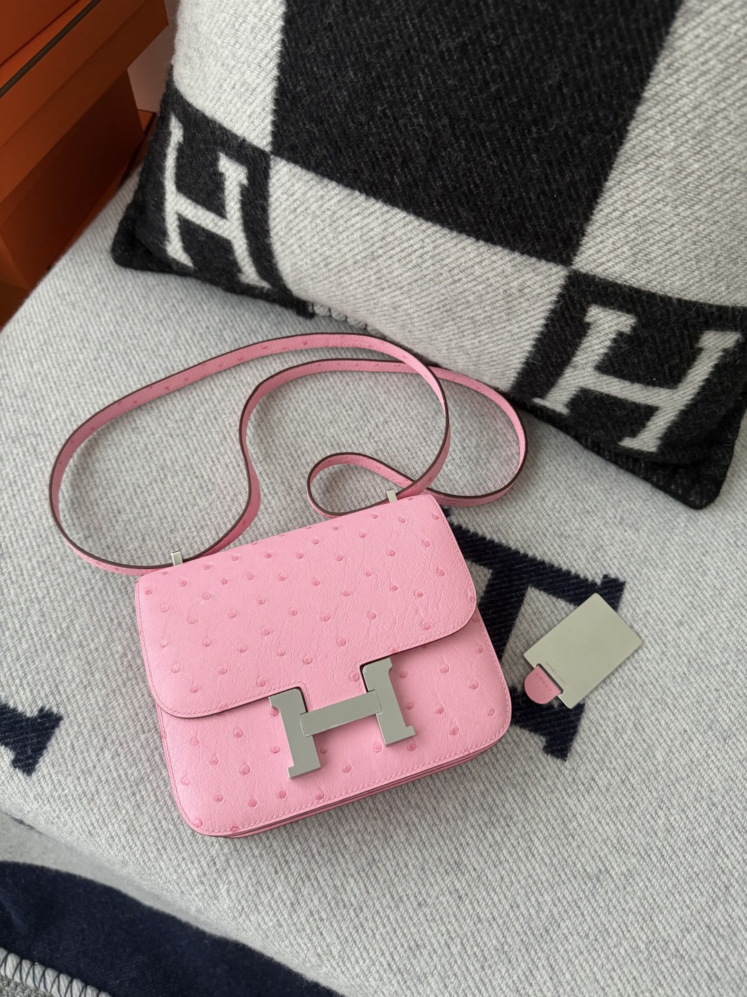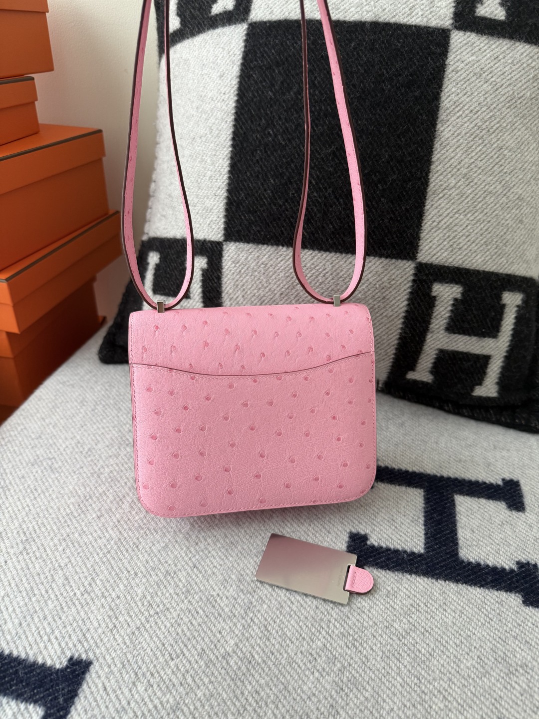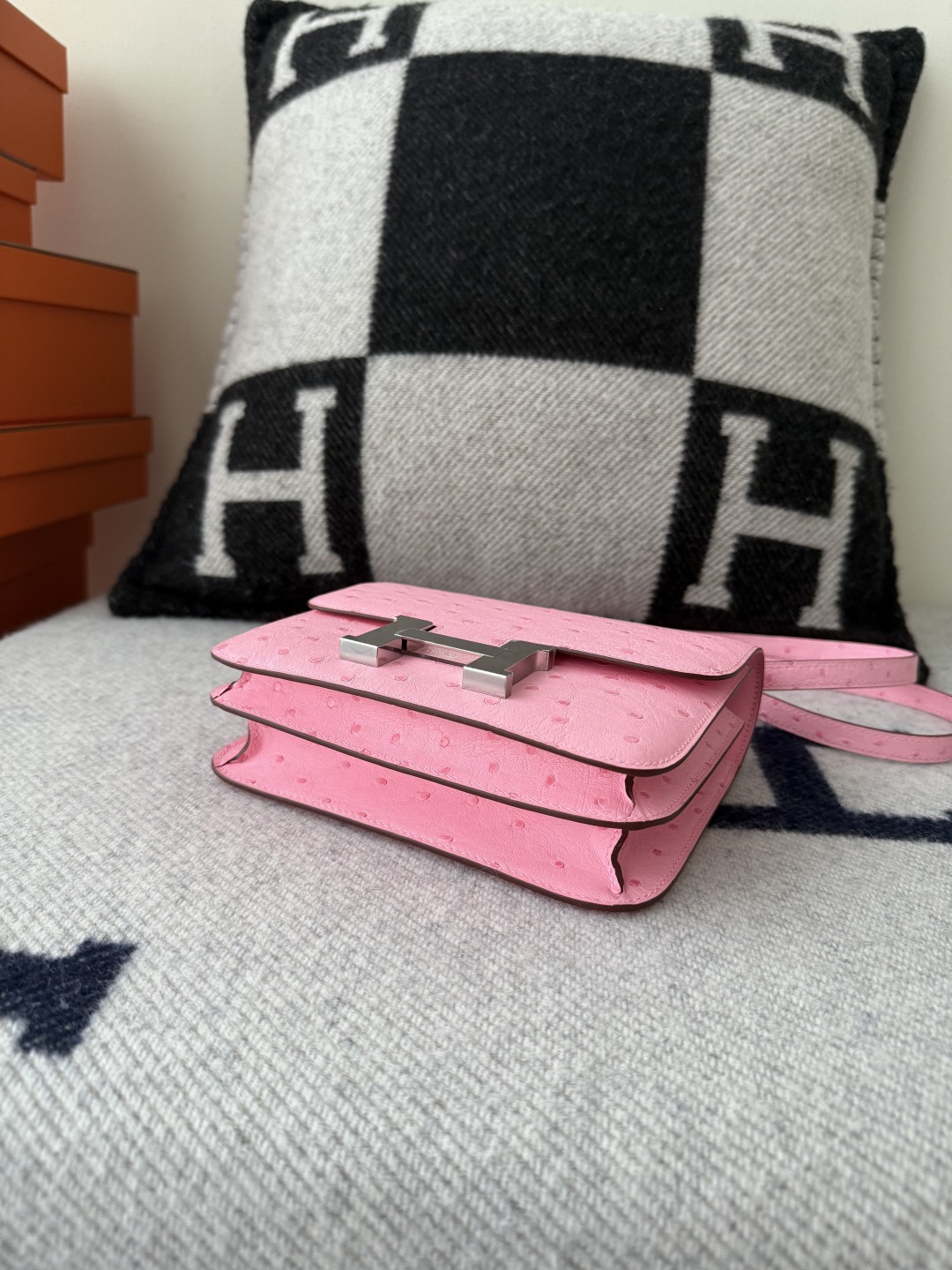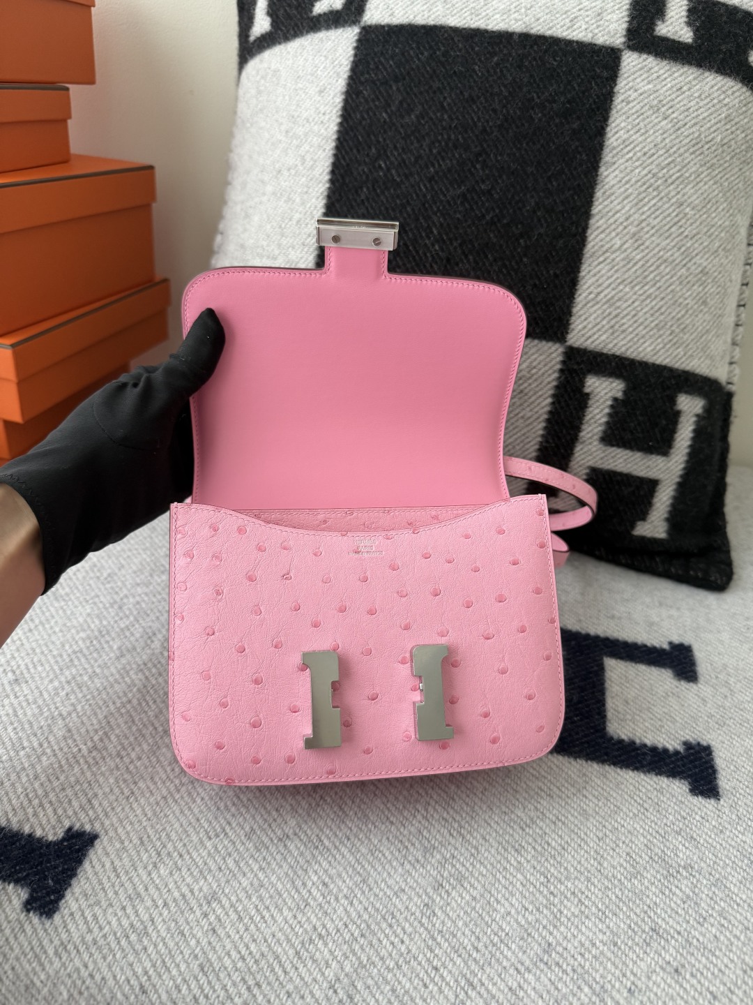 Constance 18cm Bubble Gum Color Mirror with Original Ostrich Leather
