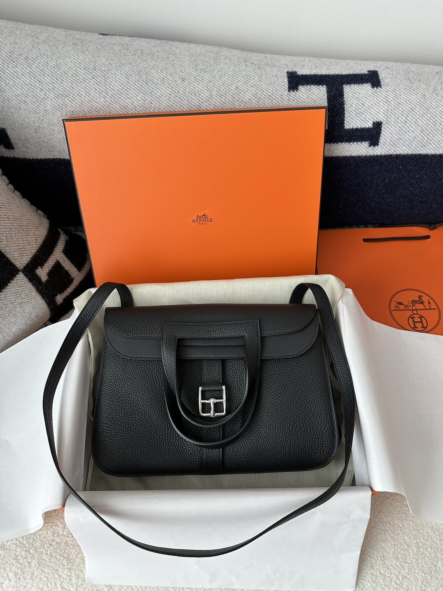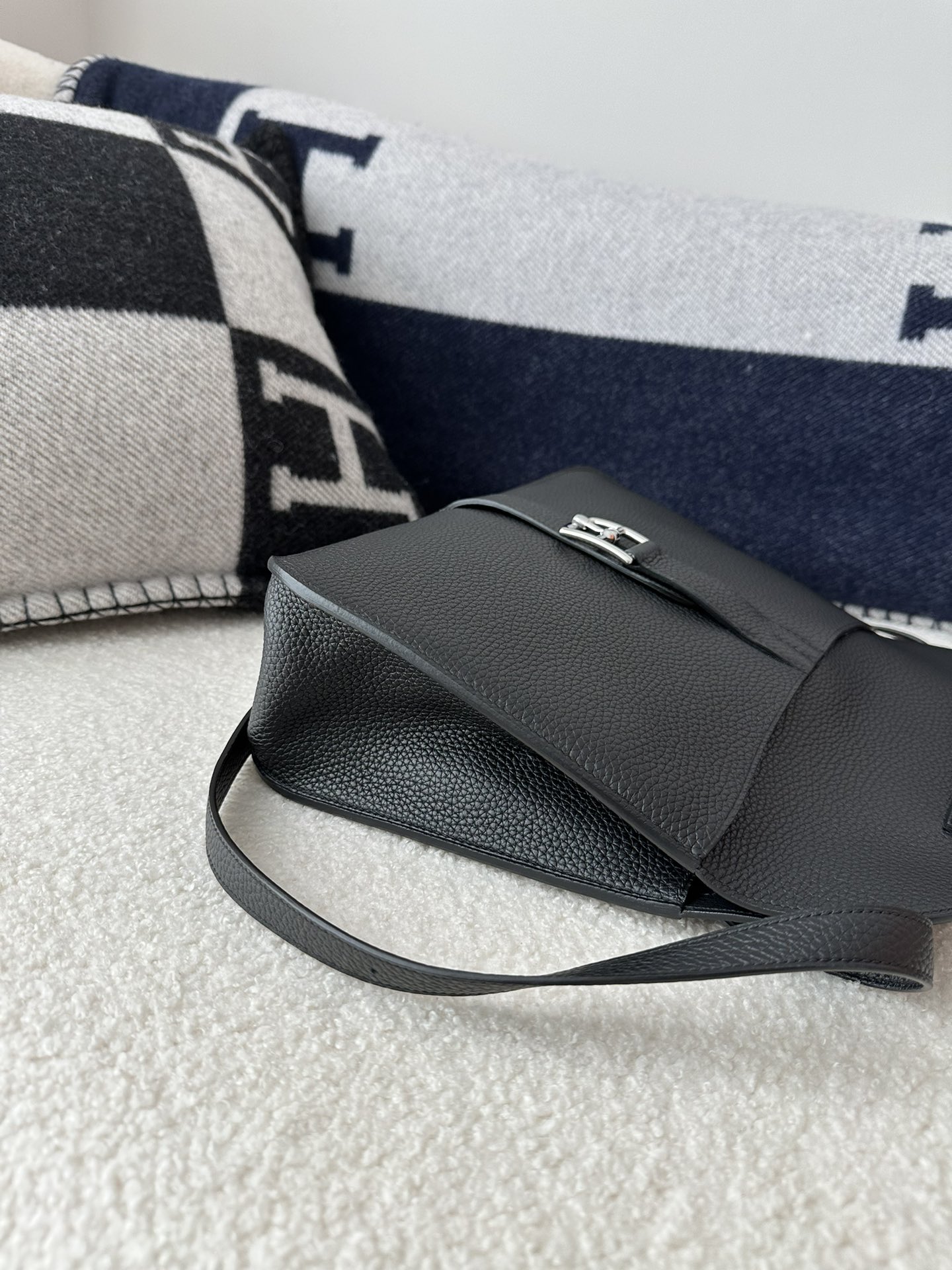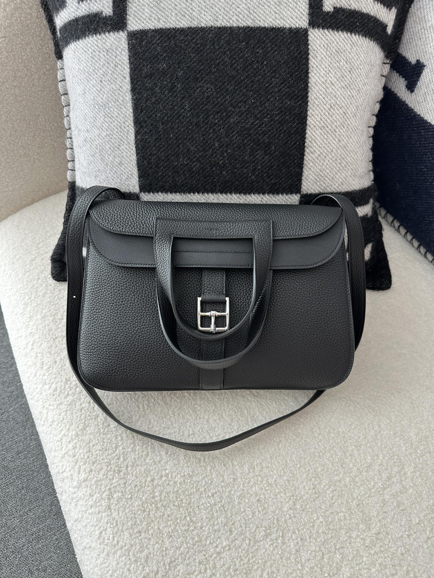 Halzan 31cm, Imported Clemence Leather, CK89 Noir (Black) with Silver Hardware.