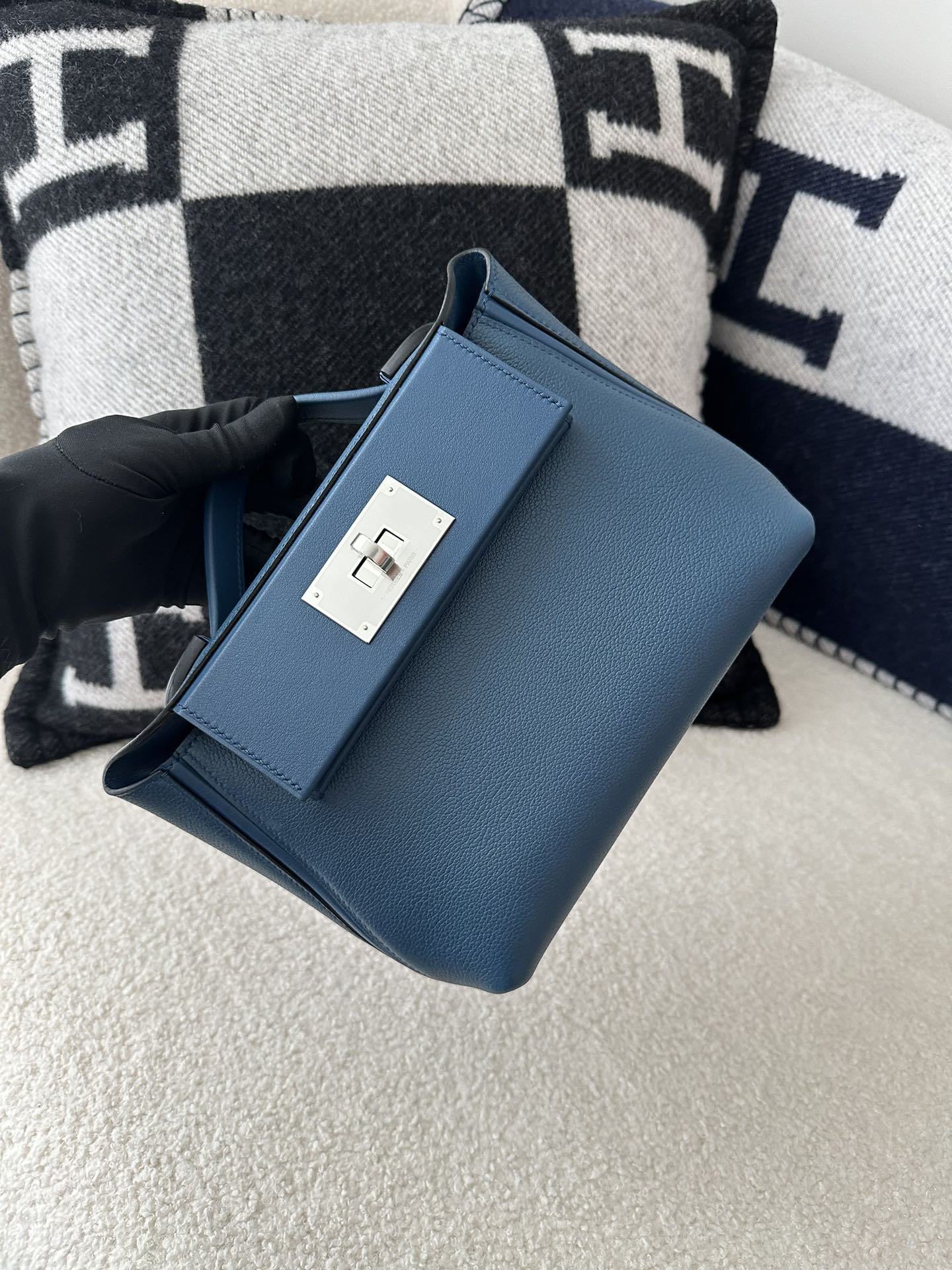 2424 Mini 21cm in Imported Evercolor and Swift Leather, S4 Deep Blue with Silver Hardware