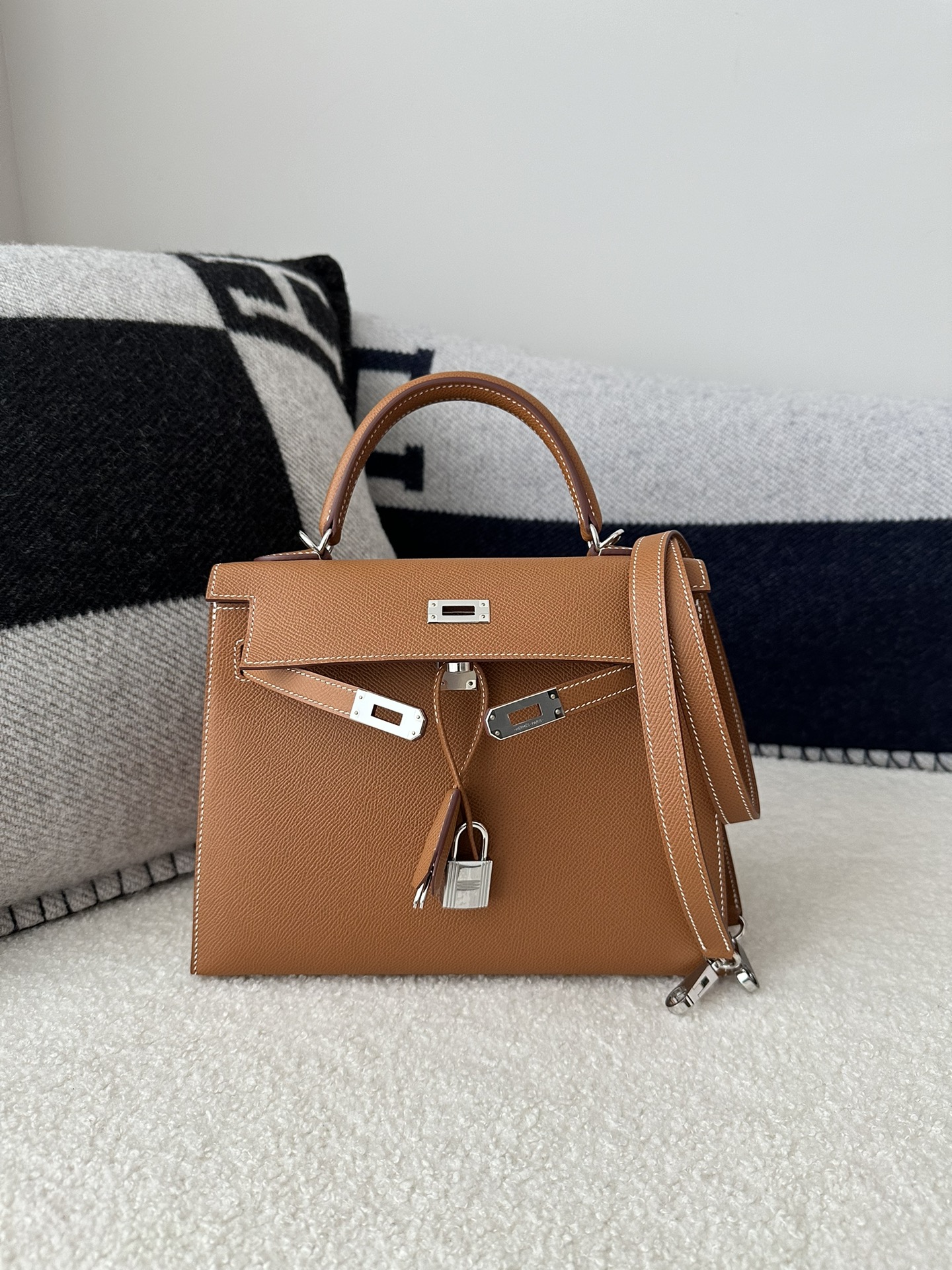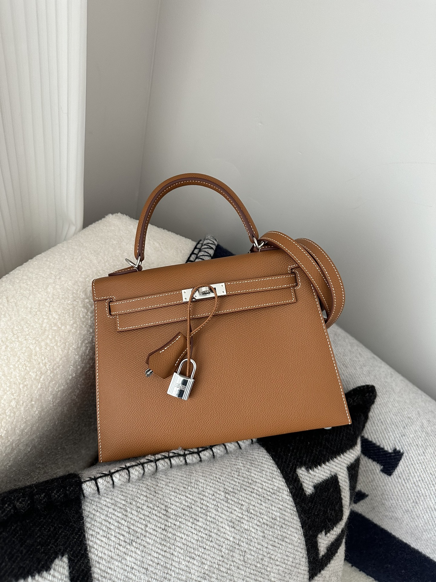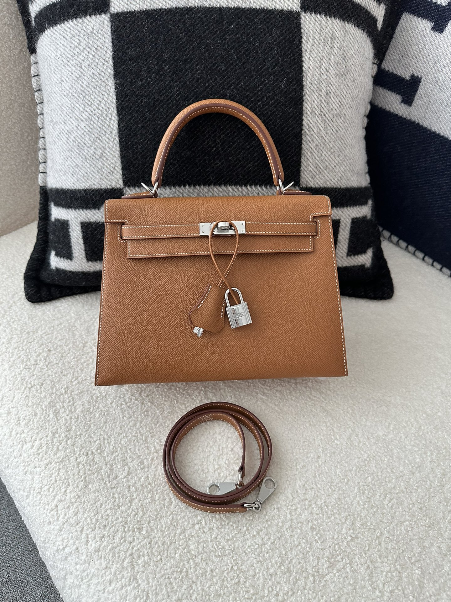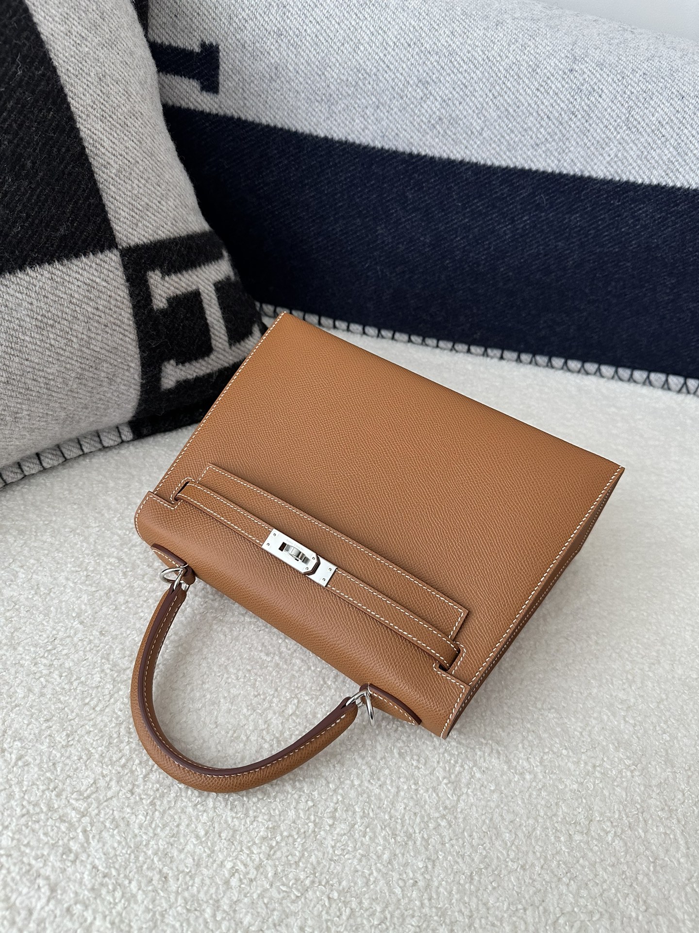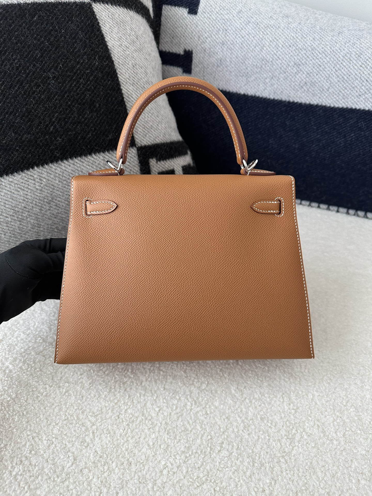 Kelly 25cm in Imported Epsom Leather, CK37 Gold with Silver Hardware