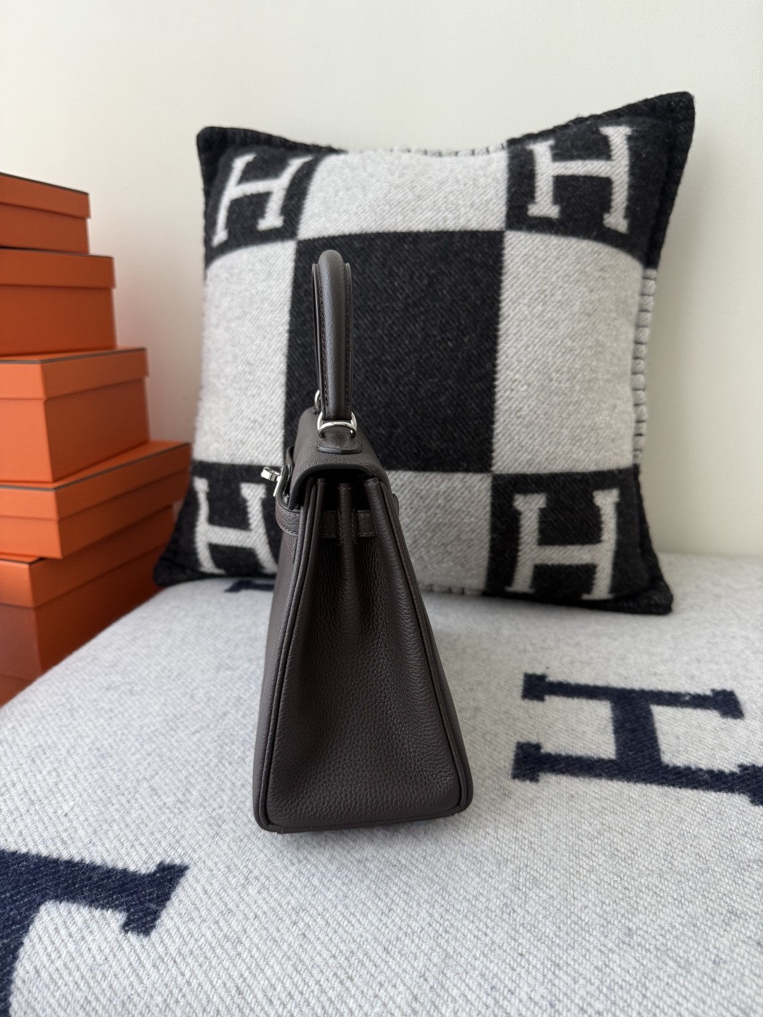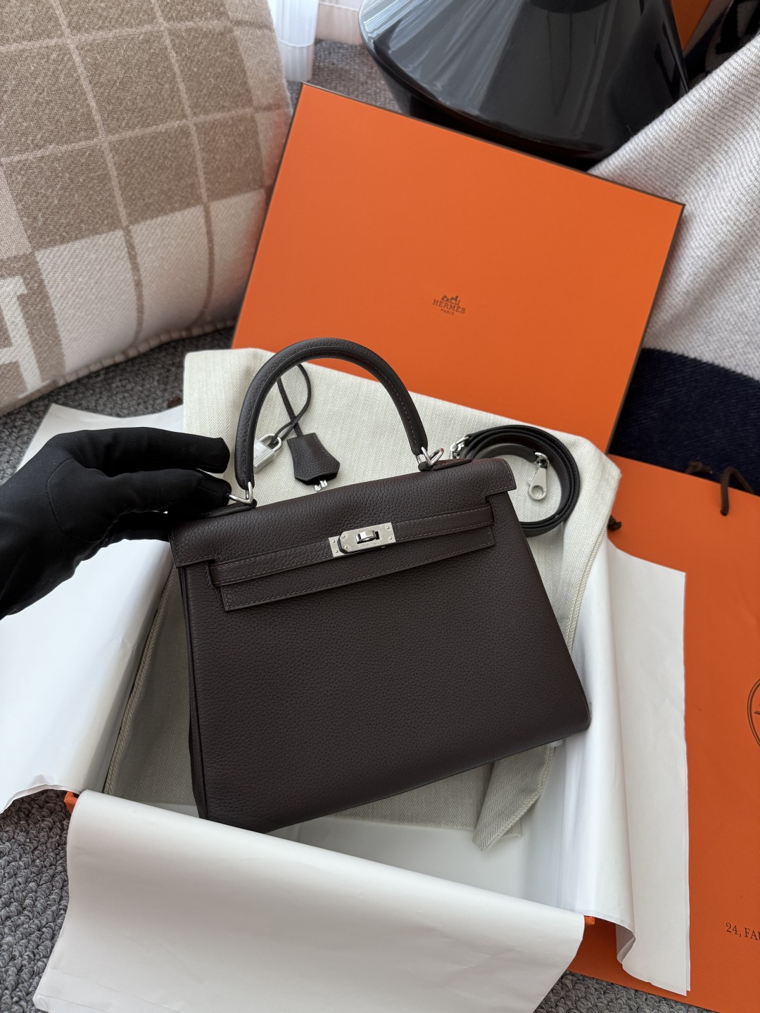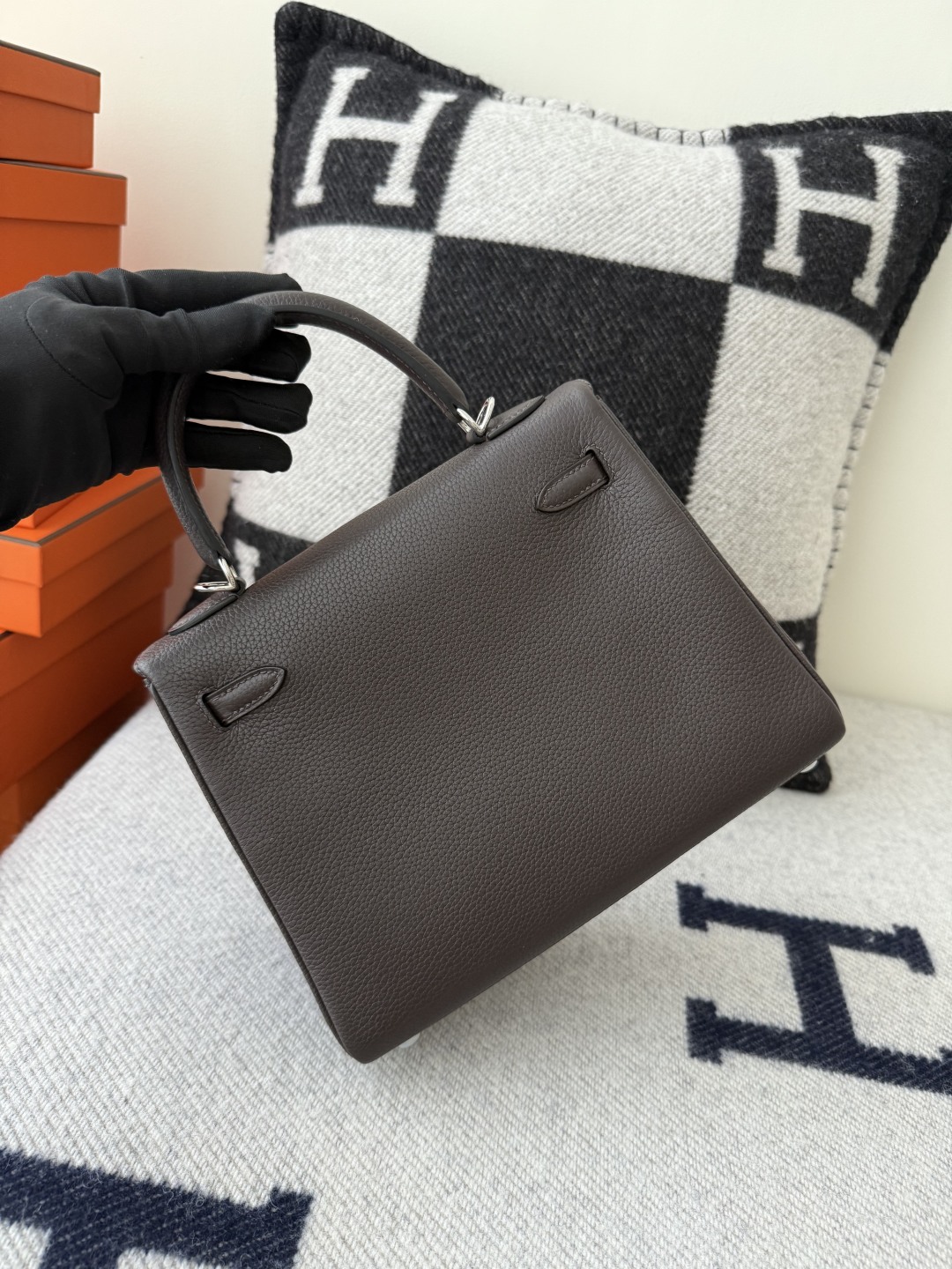 Kelly 25cm Togo Original Leather Bag CC46 Ebene Silver Hardware