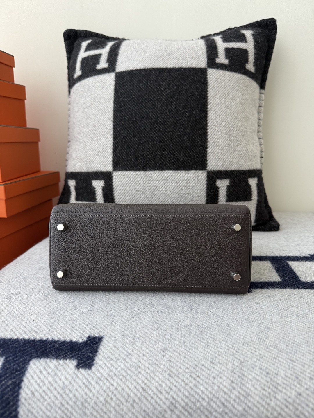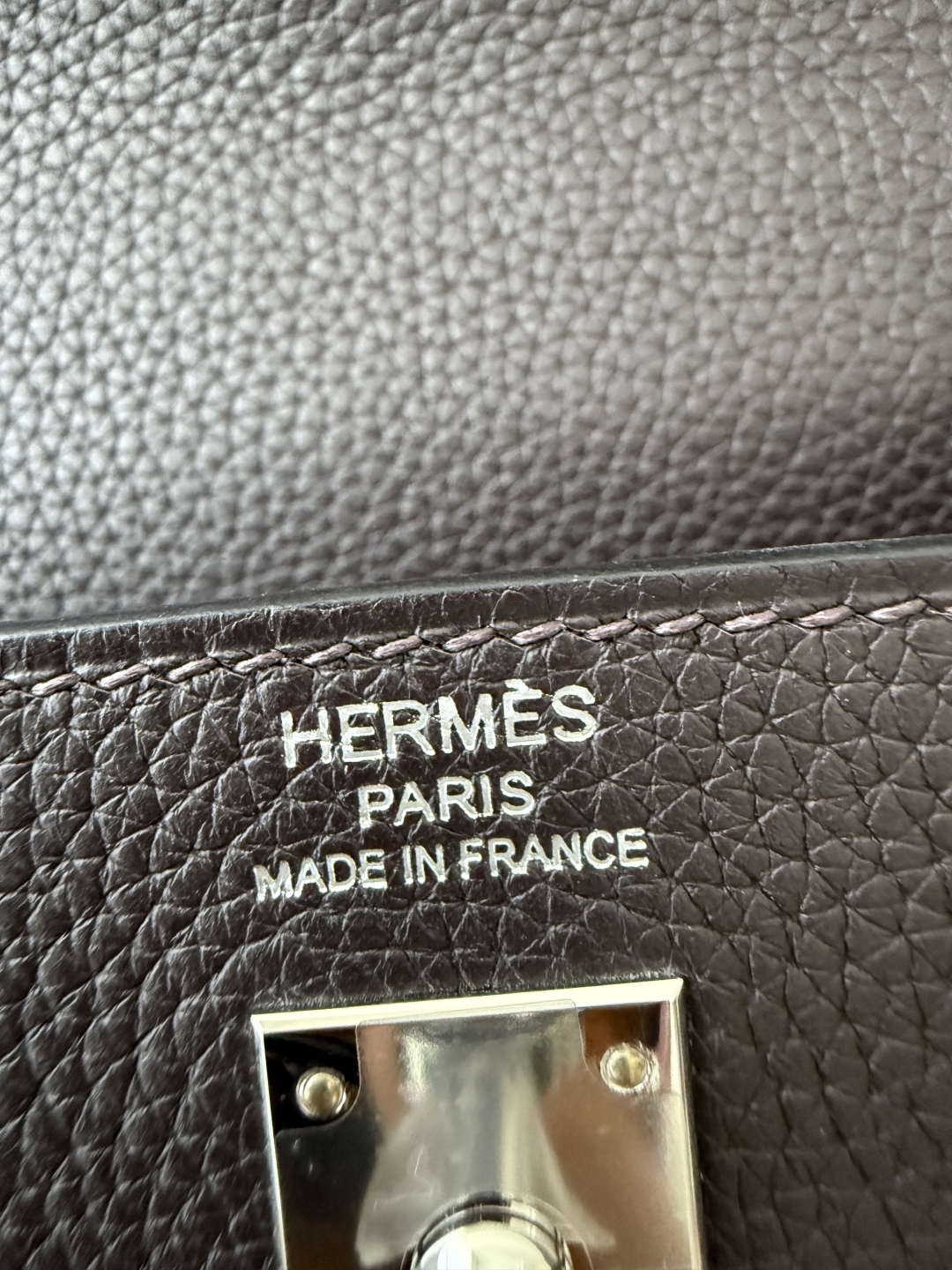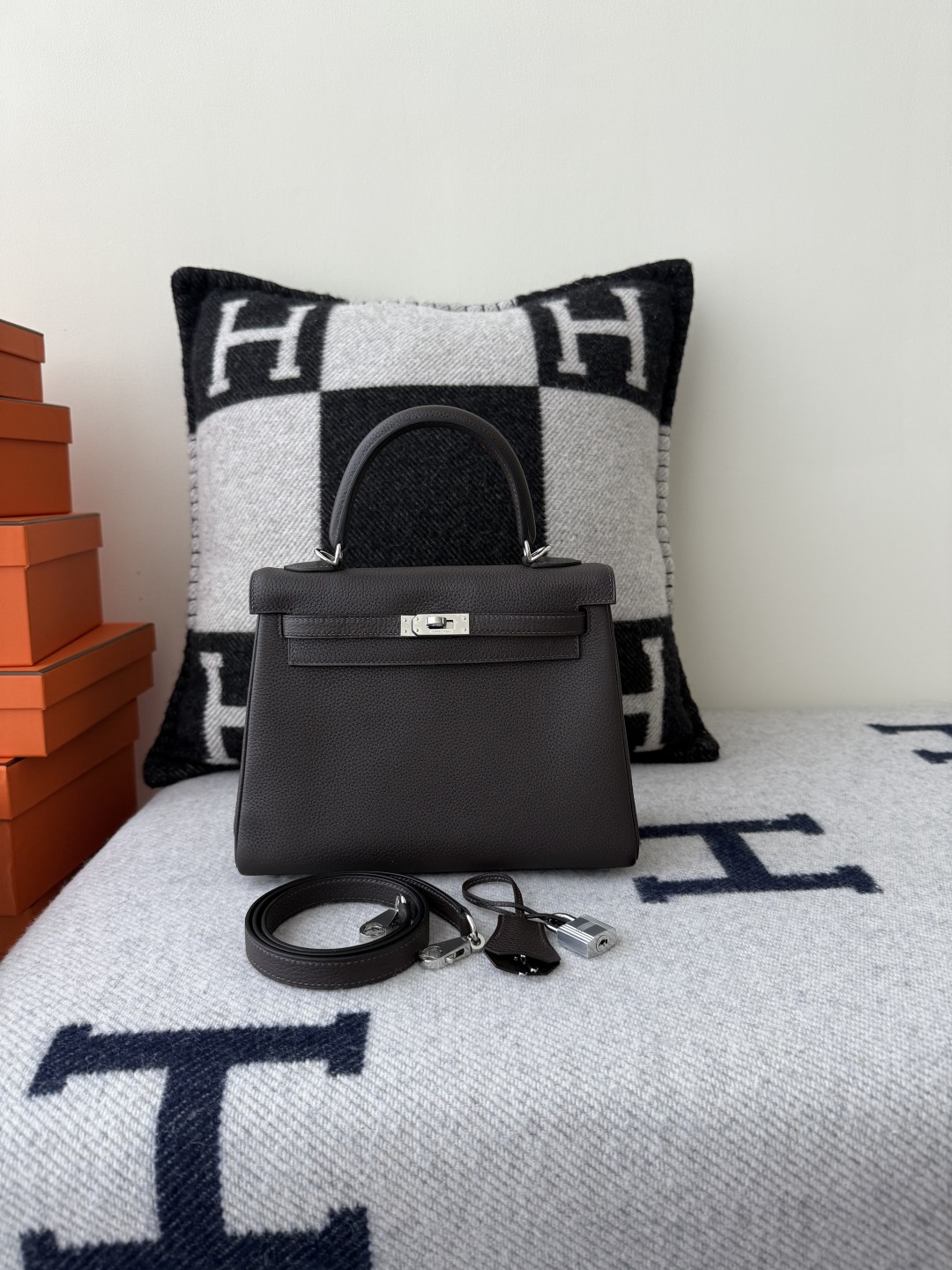 Kelly 25cm Togo Original Leather Bag CC46 Ebene Silver Hardware