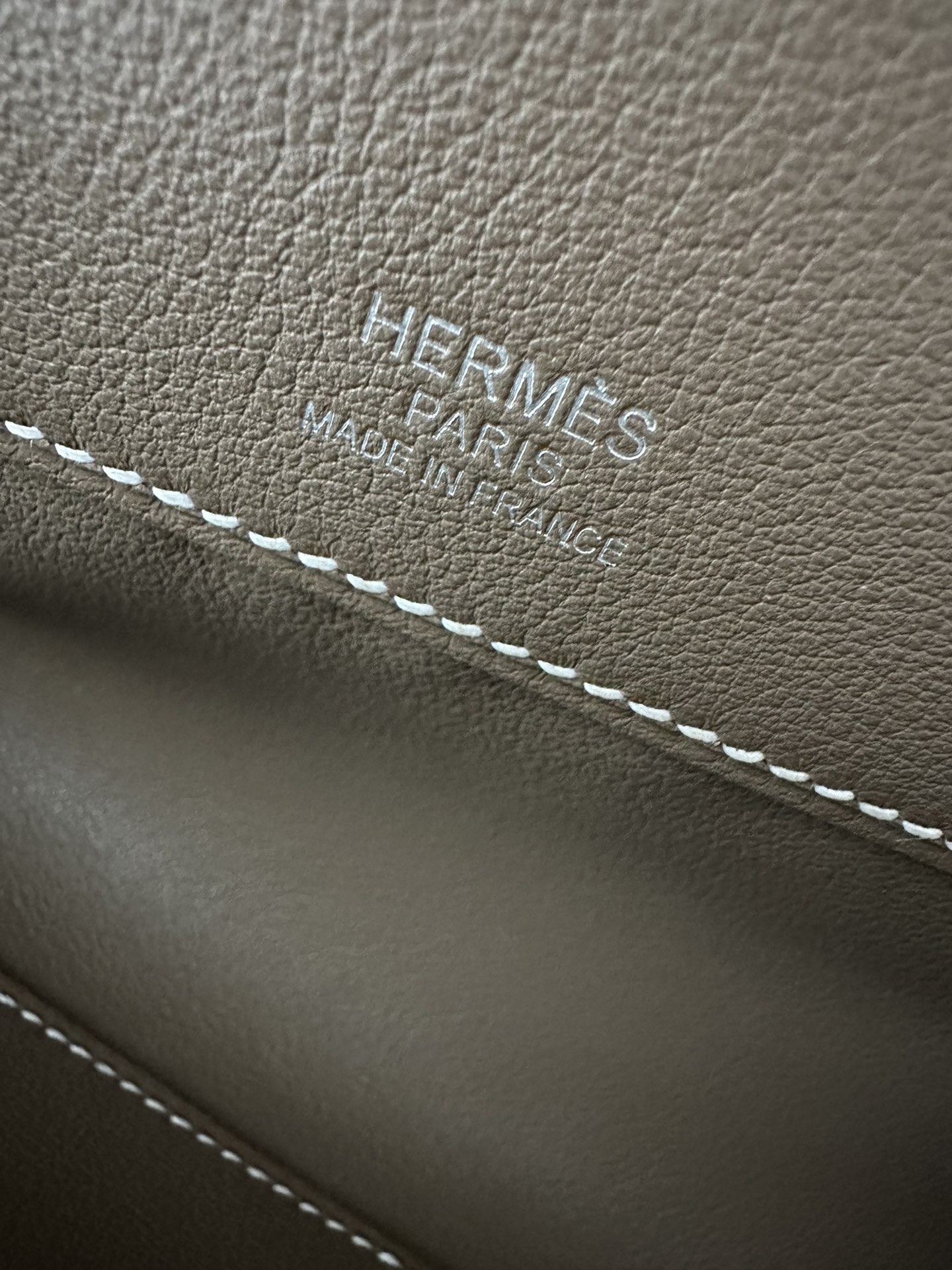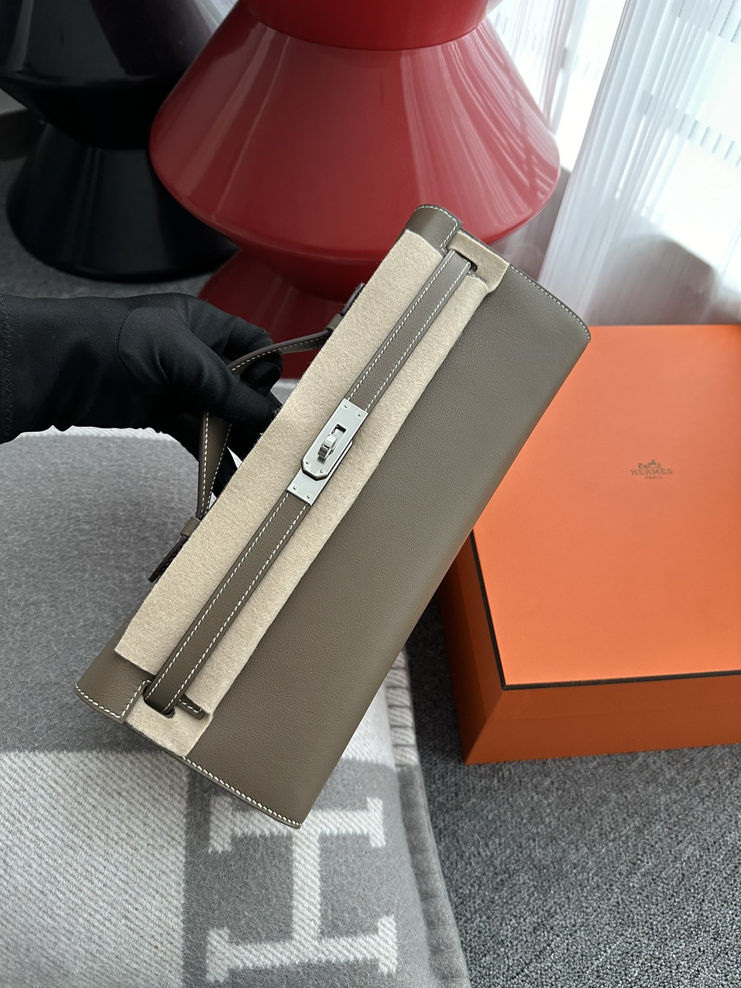 Kelly Cut 31cm Clutch in Imported Swift Calfskin, CK18 Etoupe Grey with Silver Hardware