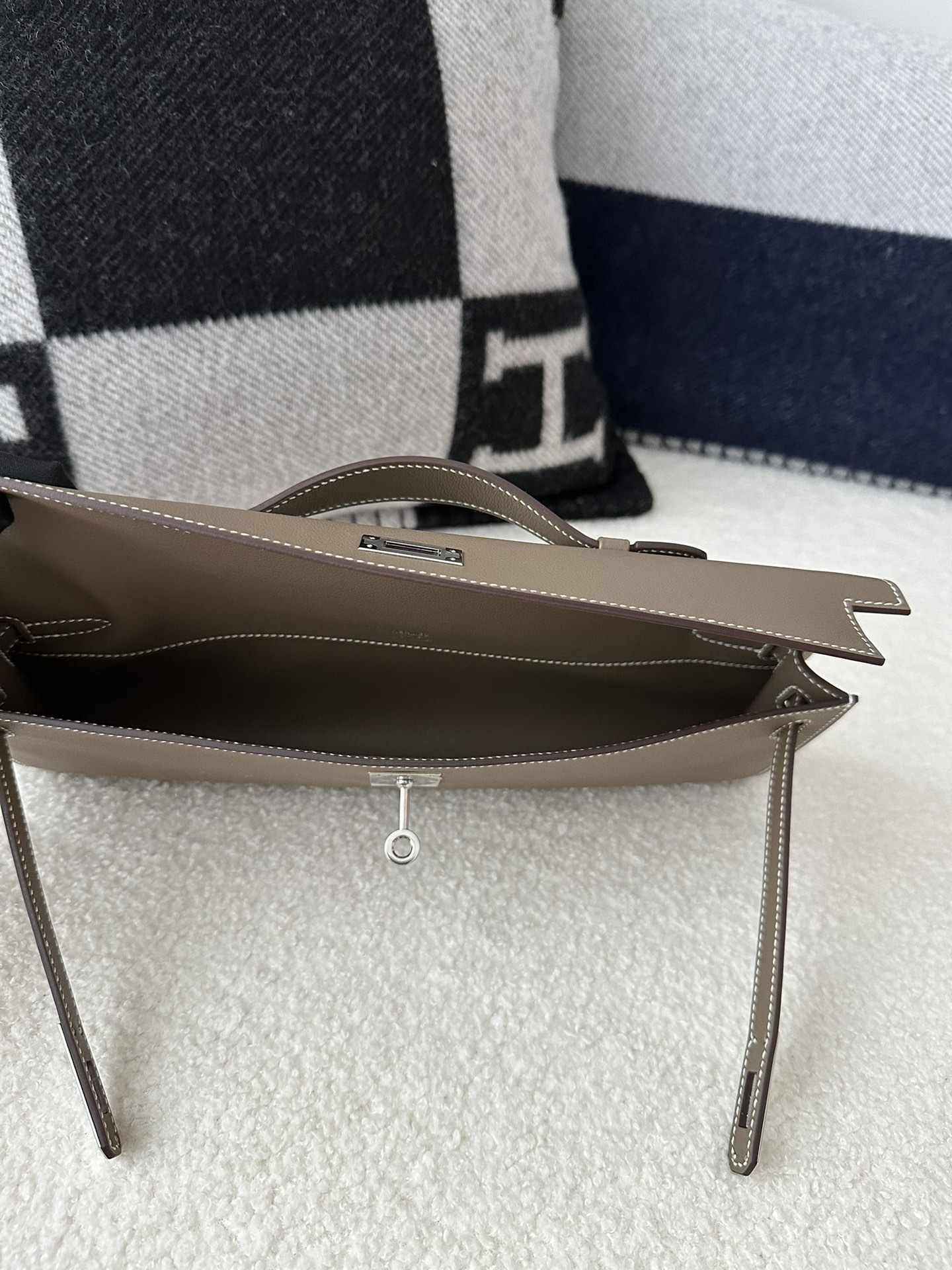 Kelly Pochette 22cm Original Leather Swift Skin N4 Gris Platine