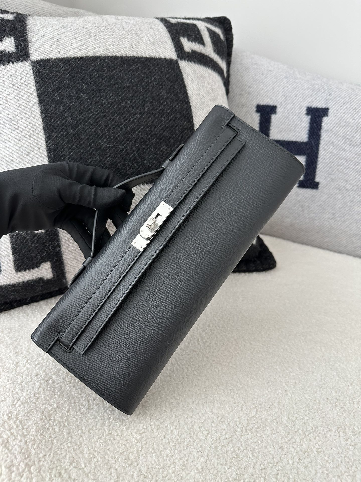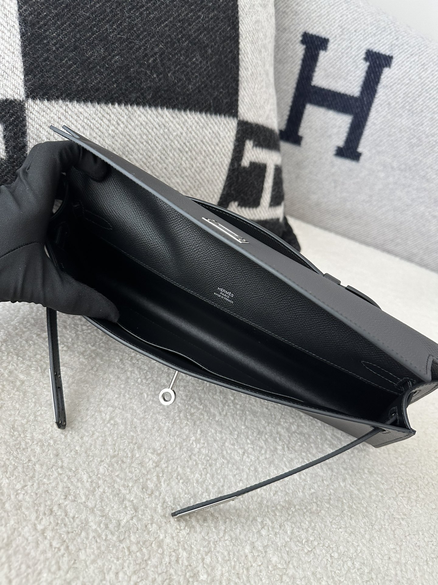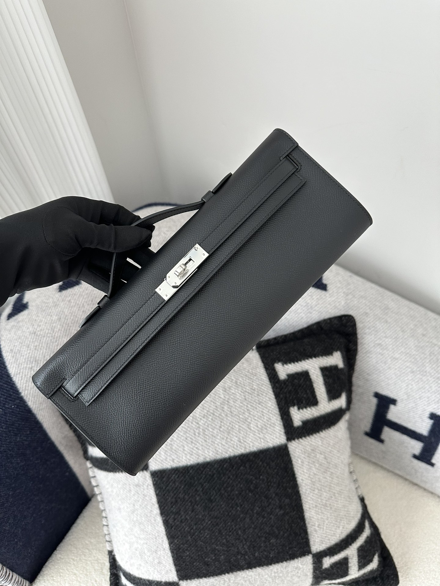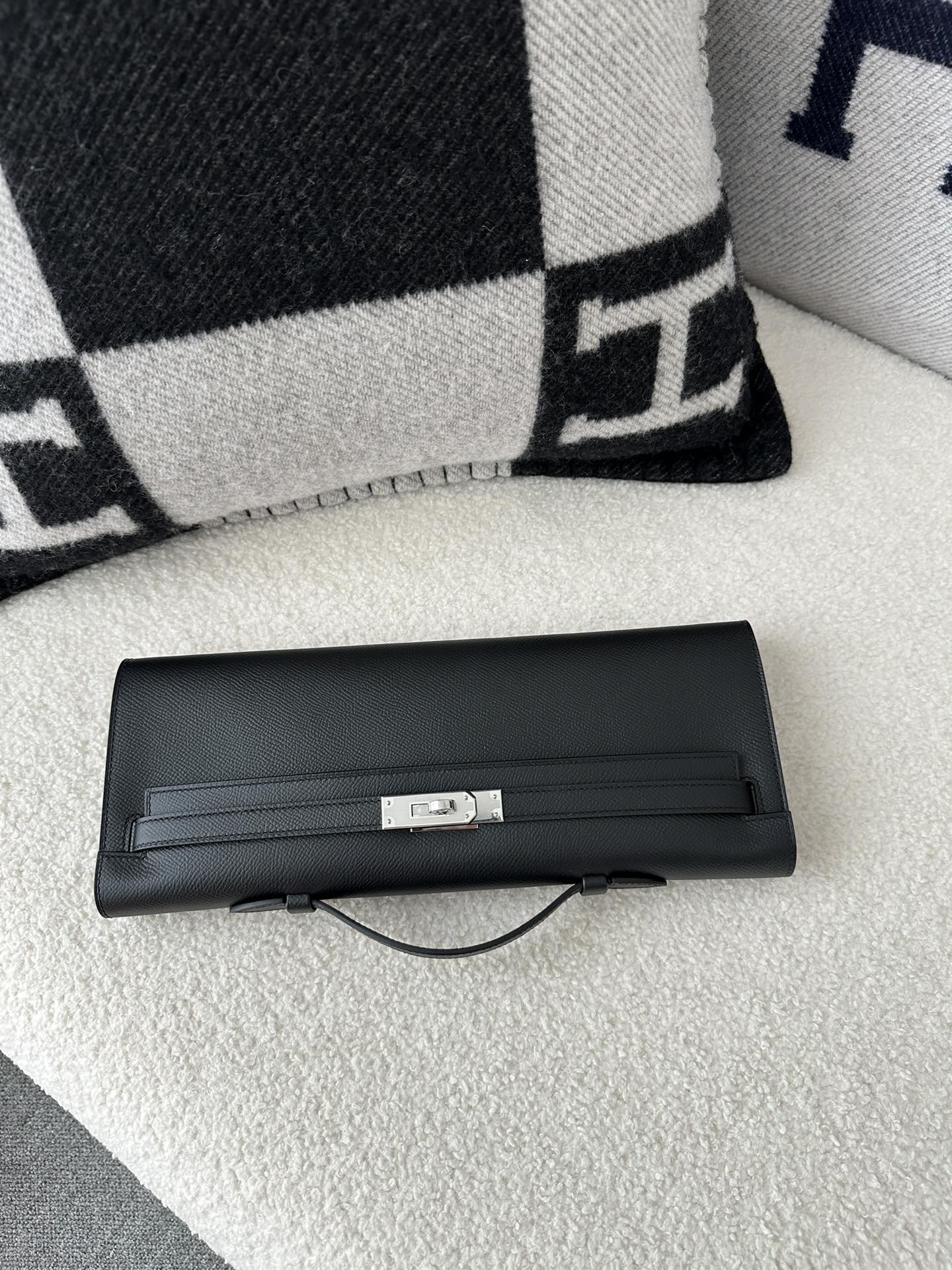 Kelly cut 31cm epsom CK89 Noir Silver hardware