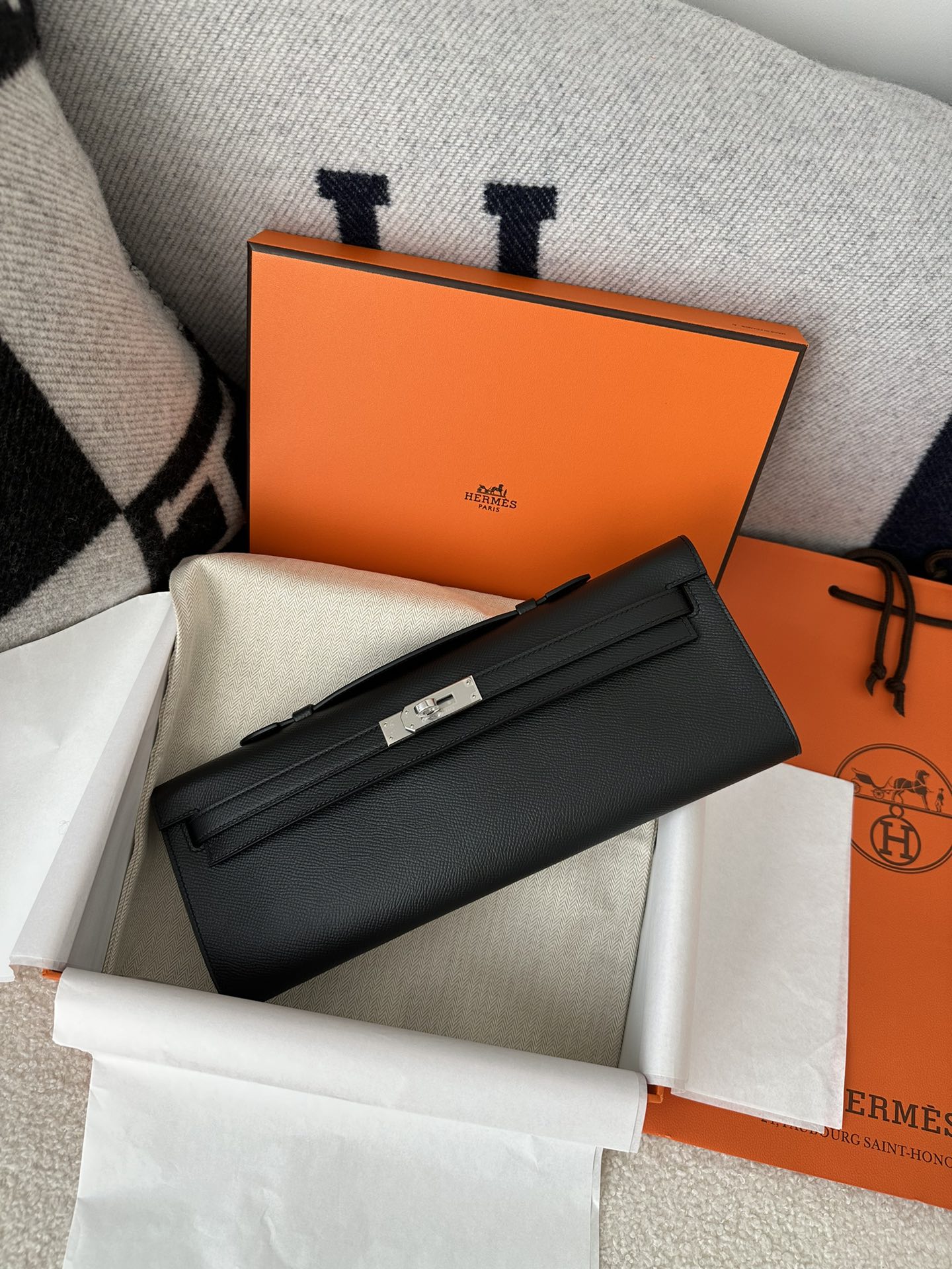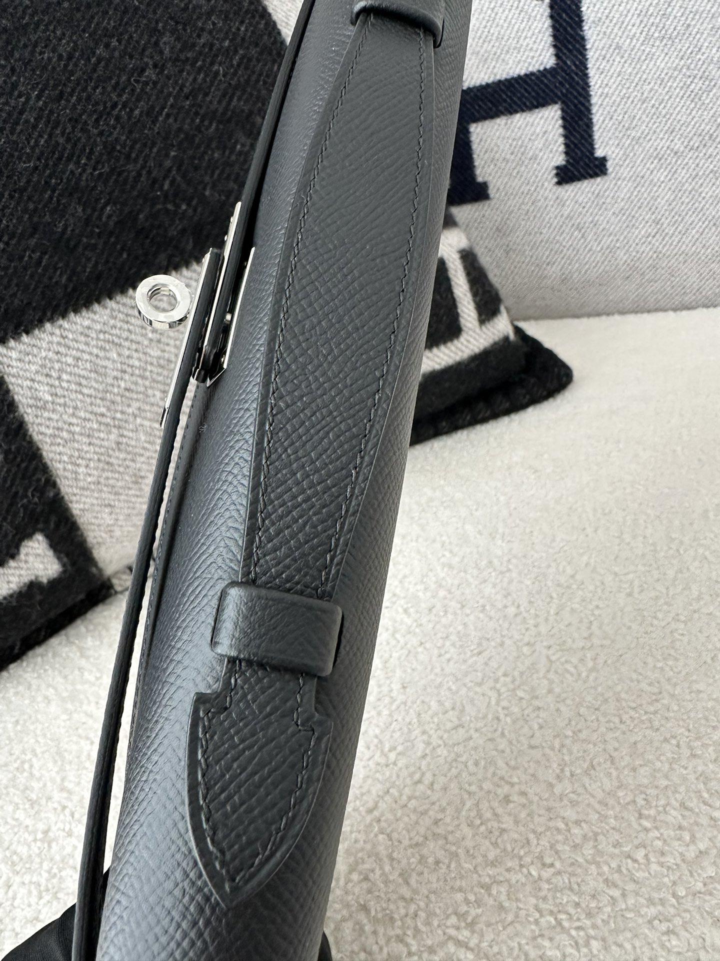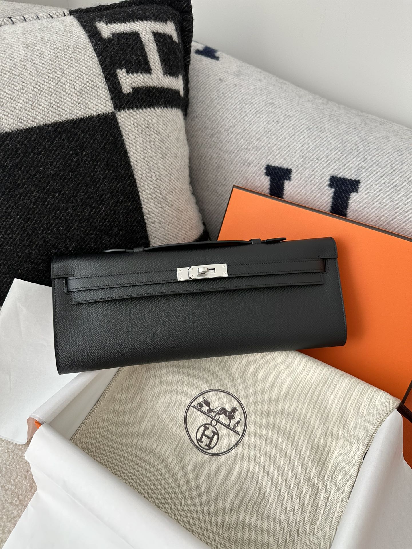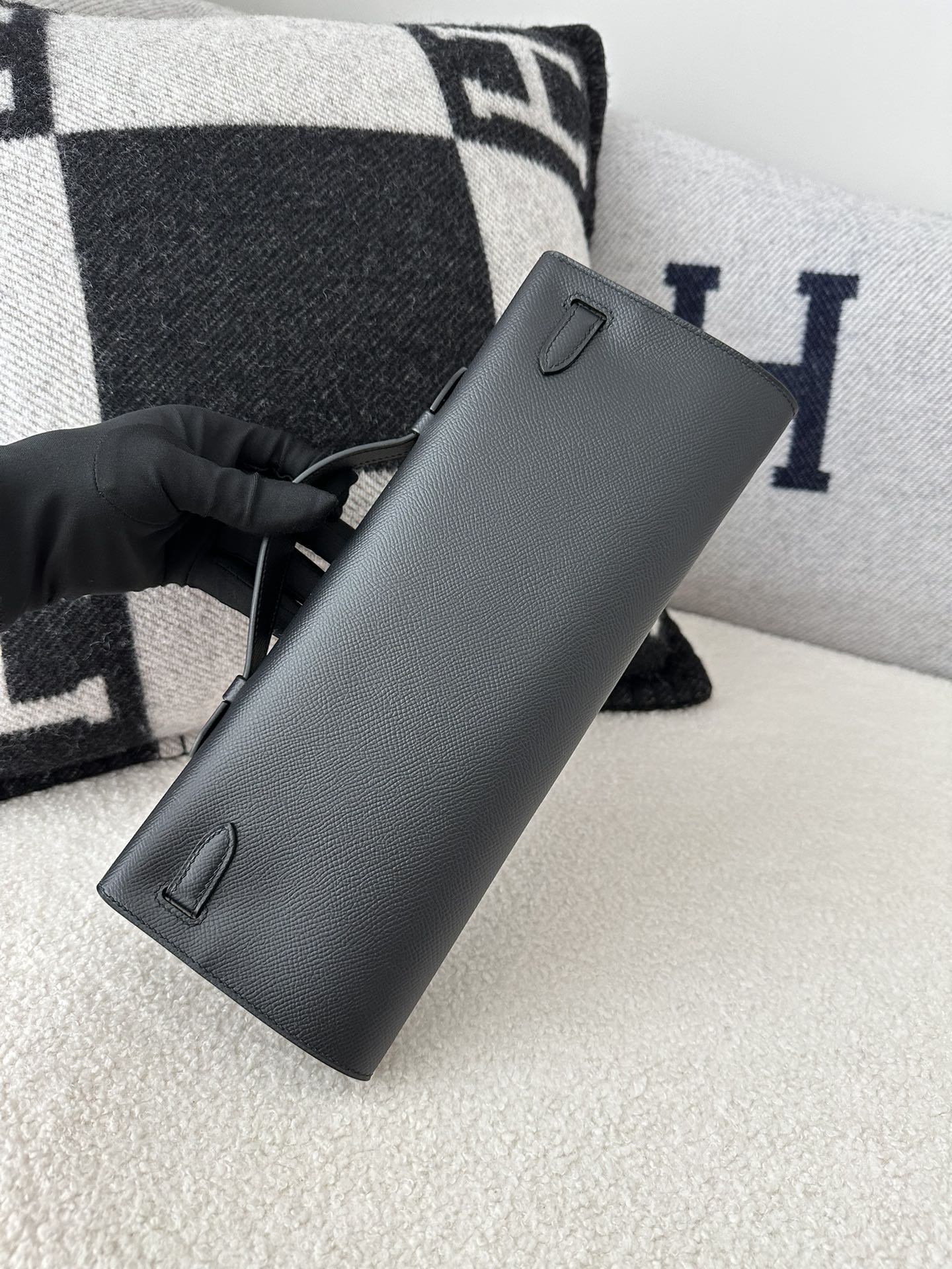 Kelly cut 31cm epsom CK89 Noir Silver hardware