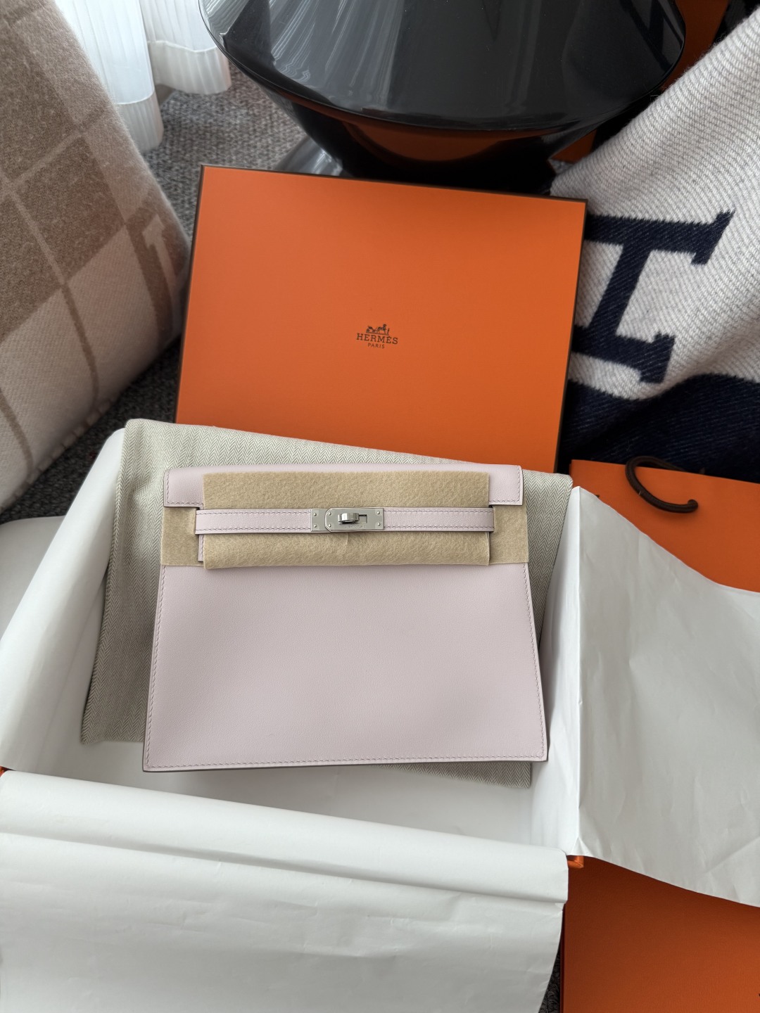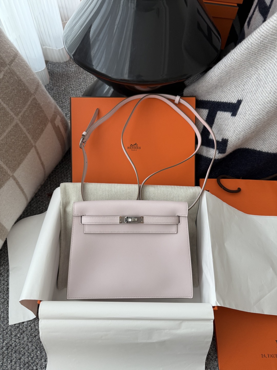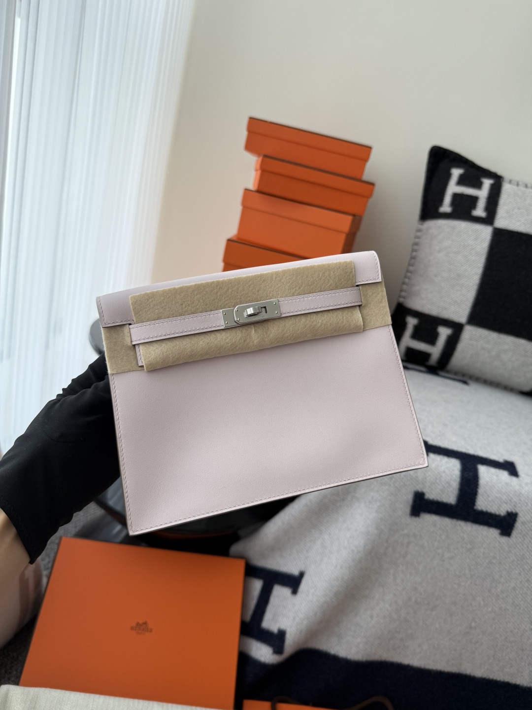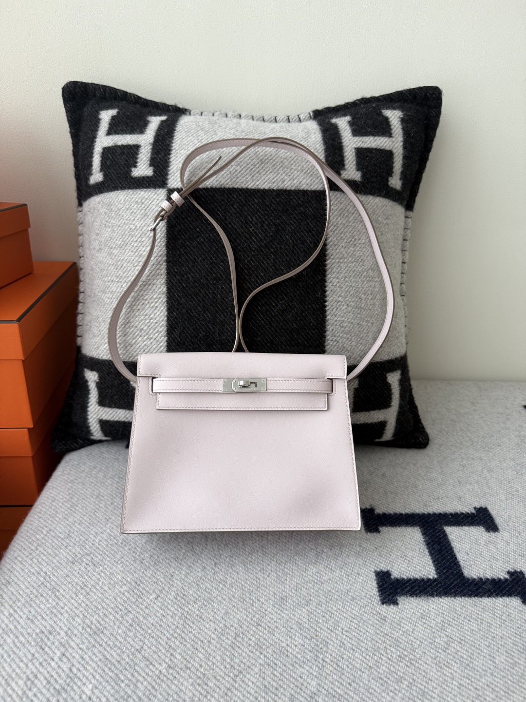 Kelly Danse 22cm Jump Dance Bag Original Leather Swift in Mauve Pale Color