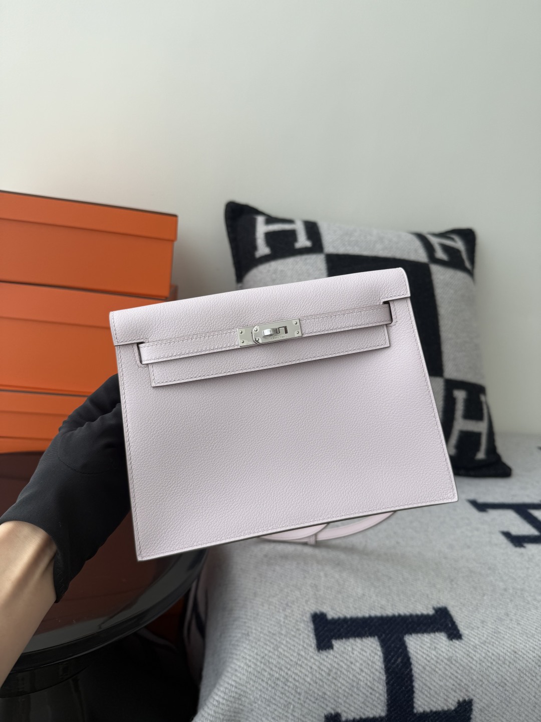 Kelly Pochette 22cm Original Leather Swift Skin N4 Gris Platine