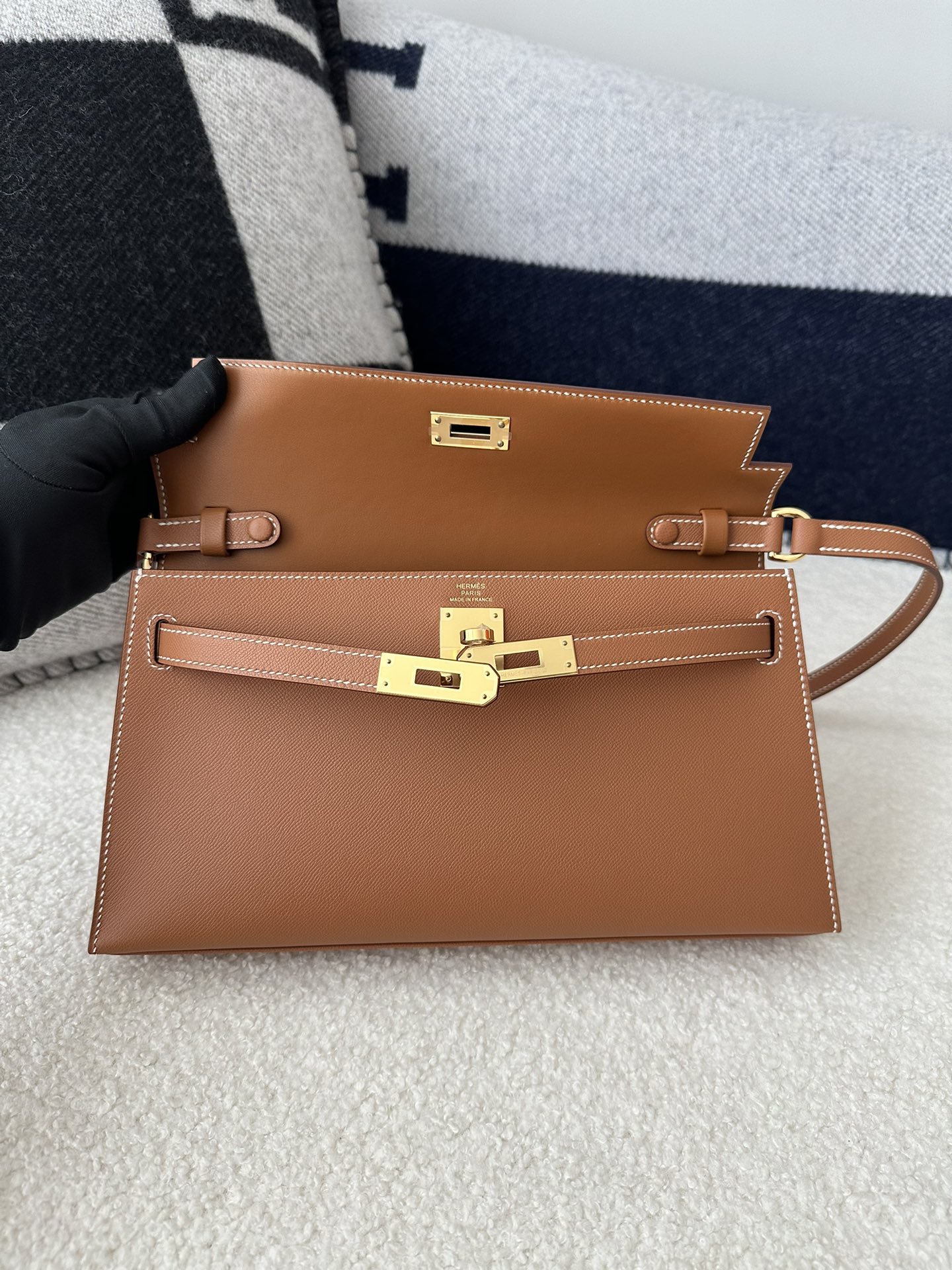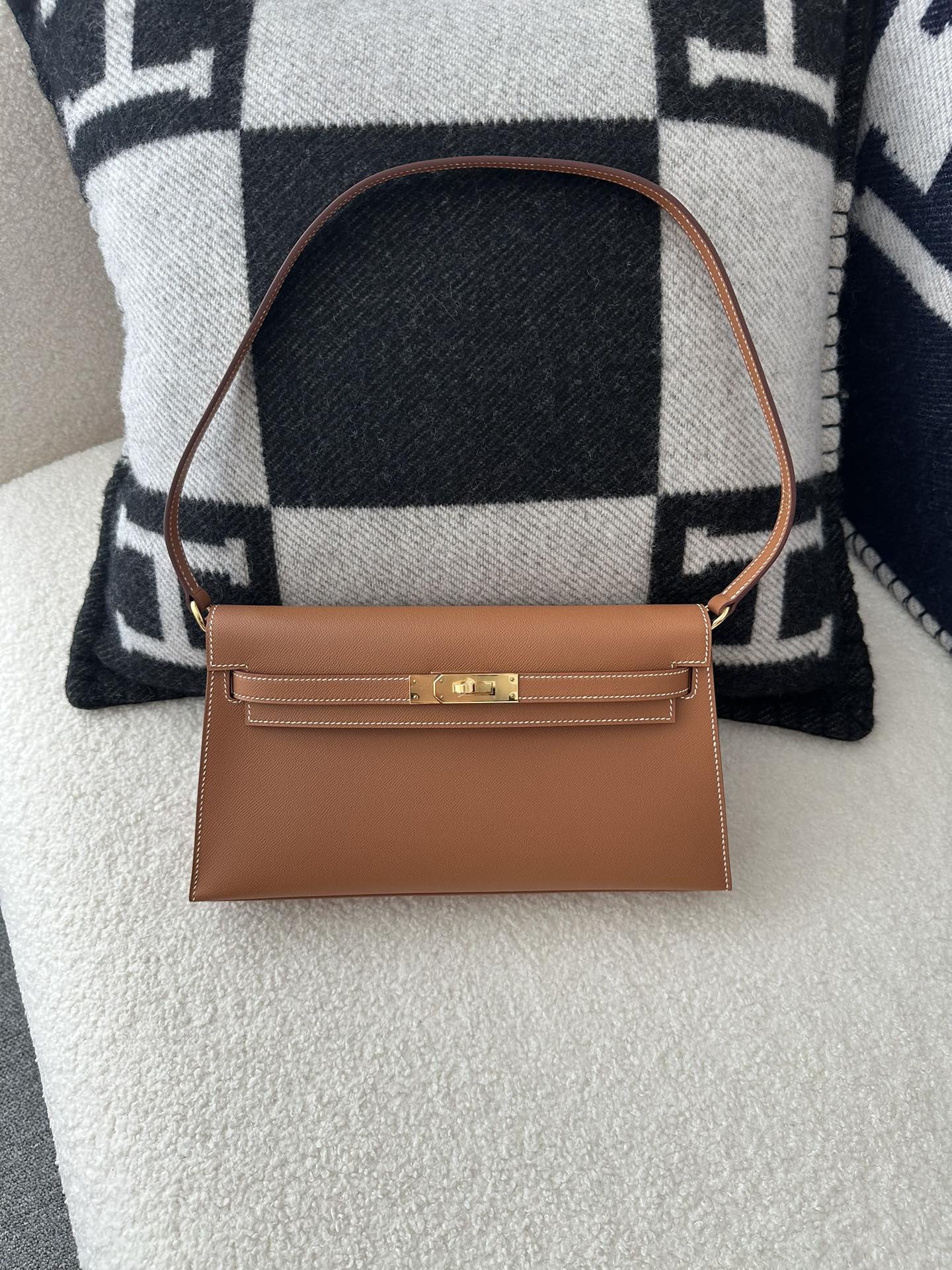 Kelly Elan 27cm New Style Shoulder Bag in Imported Madame Leather, CC37 Gold with Gold Hardware
