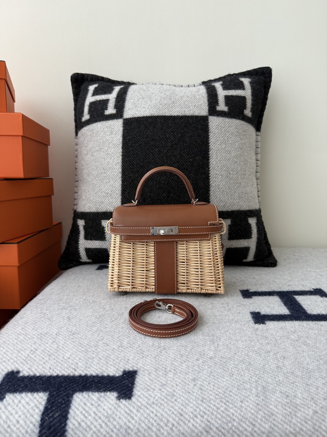Kelly Mini Picnic Basket 20cm - Gold Brown with Silver Hardware
