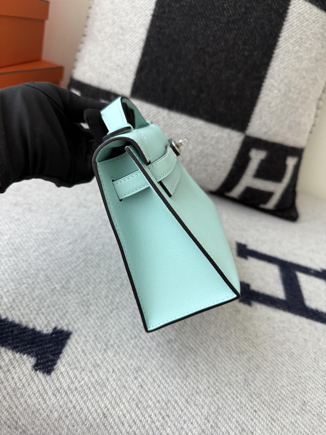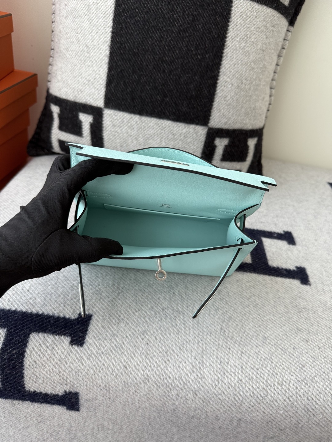 Kelly Pochette 22cm Bleu Zephyr Swift Skin Gold Hardware