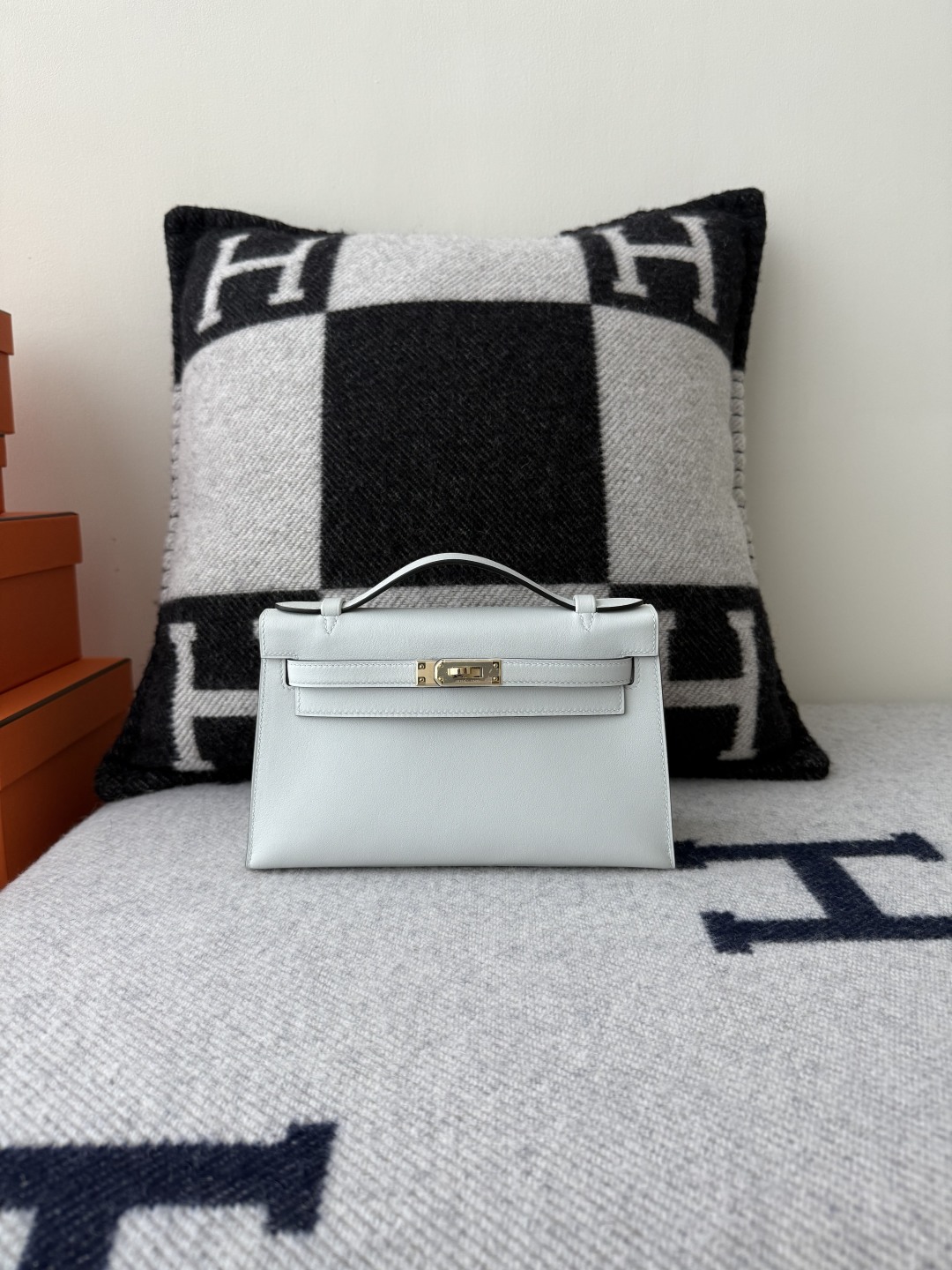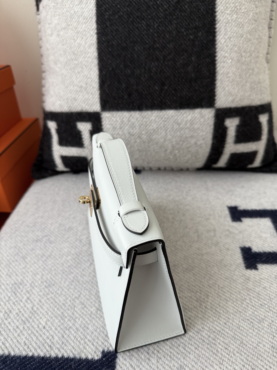 Kelly Pochette 22cm Swift Leather CK10 Craie Color