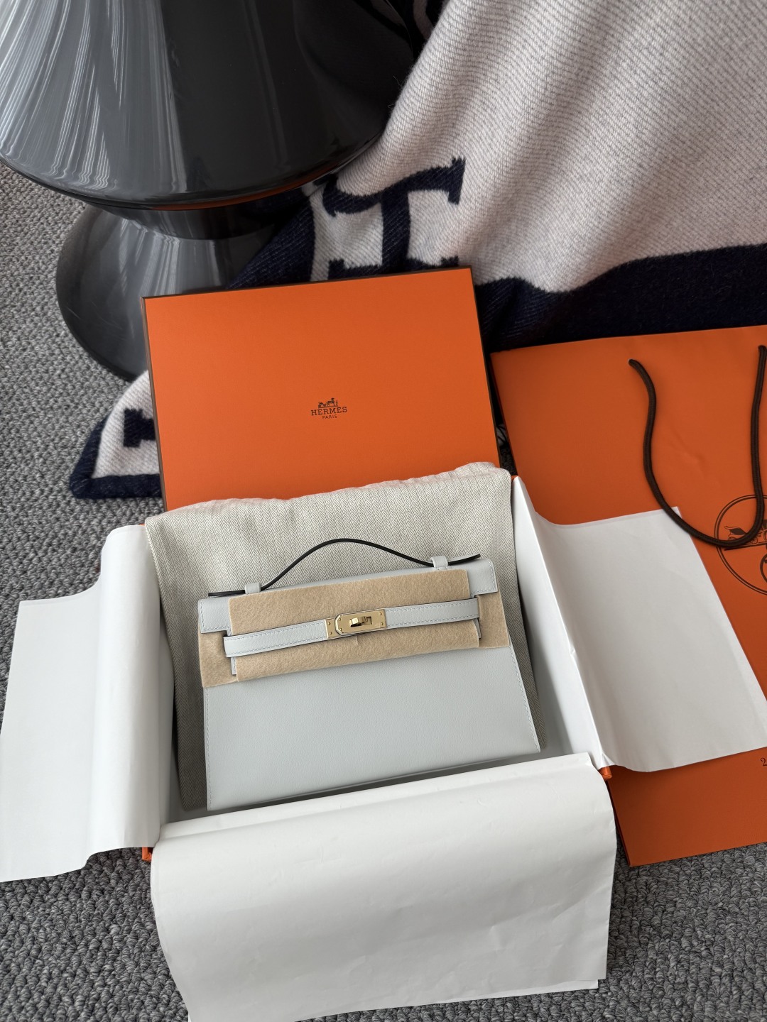 Kelly Pochette 22cm Original Leather Swift Skin N4 Gris Platine