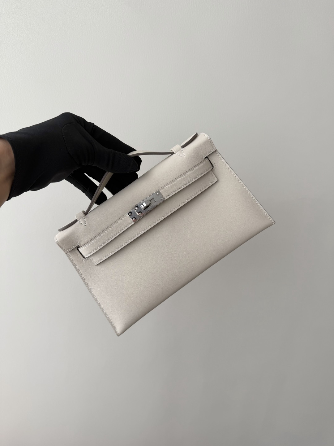 Kelly Pochette 22cm Swift Leather CK10 Craie Color