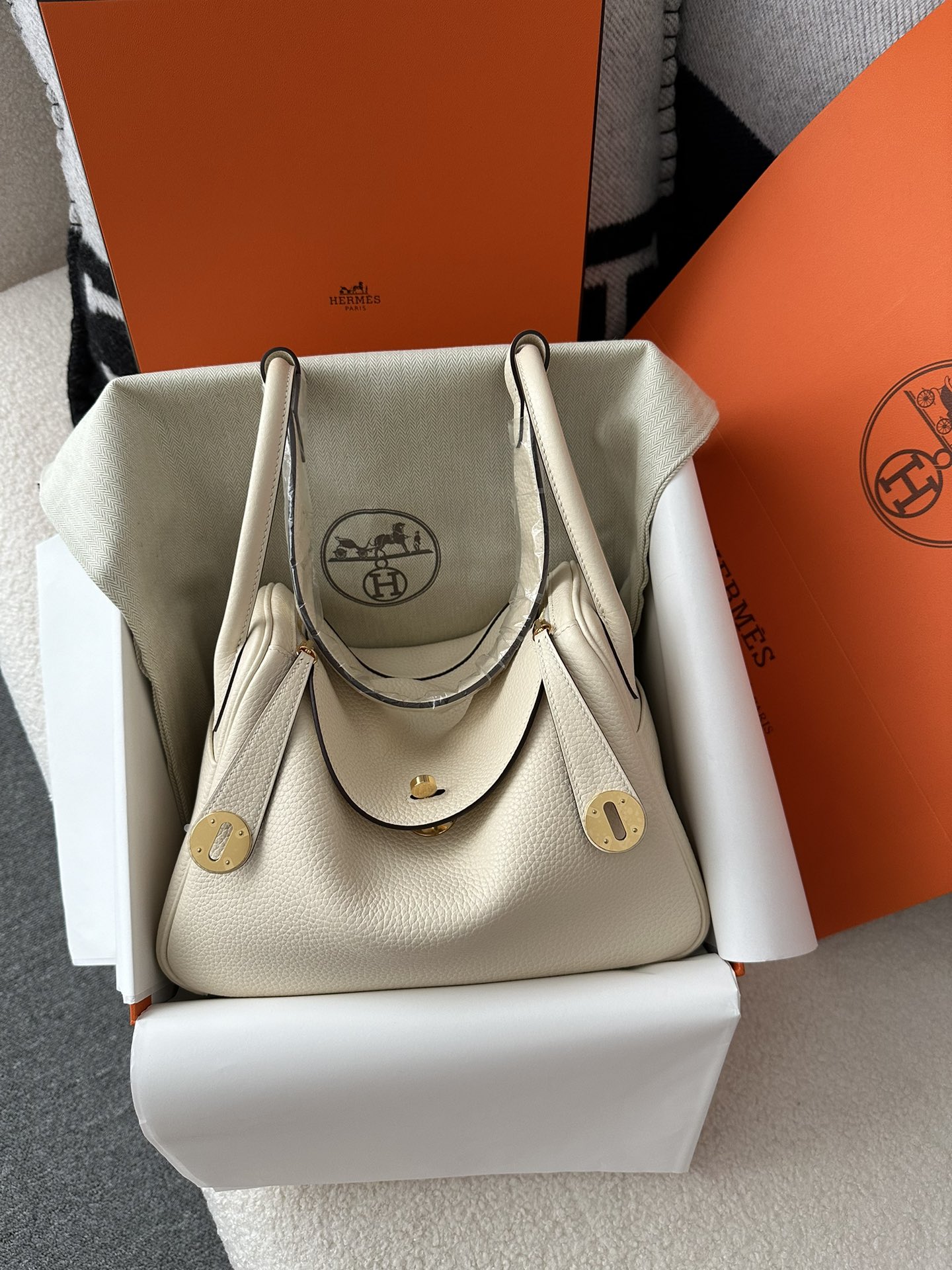 Lindy 26cm in Imported Togo Clemence Leather, I2 Nata Cream White with Gold Hardware.