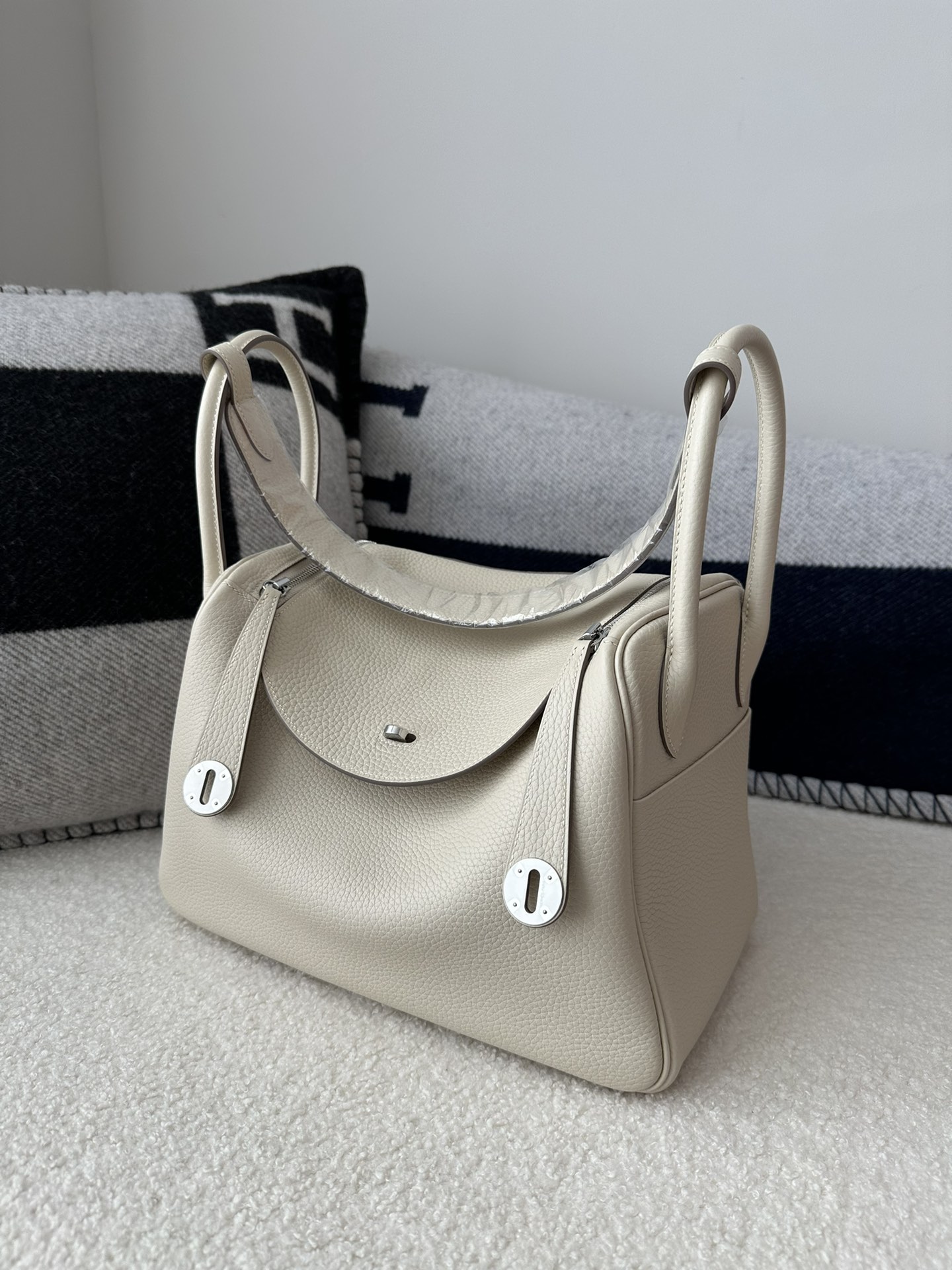 Lindy 30cm in Imported TC Clemence Leather, CK10 Carie Milkshake White with Silver Hardware