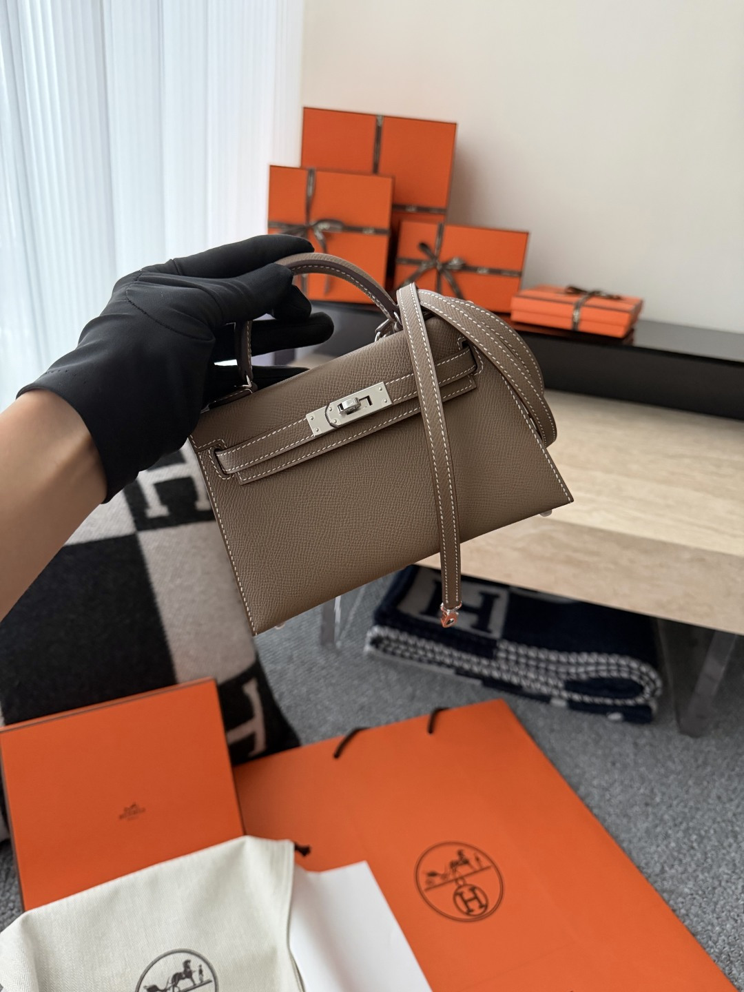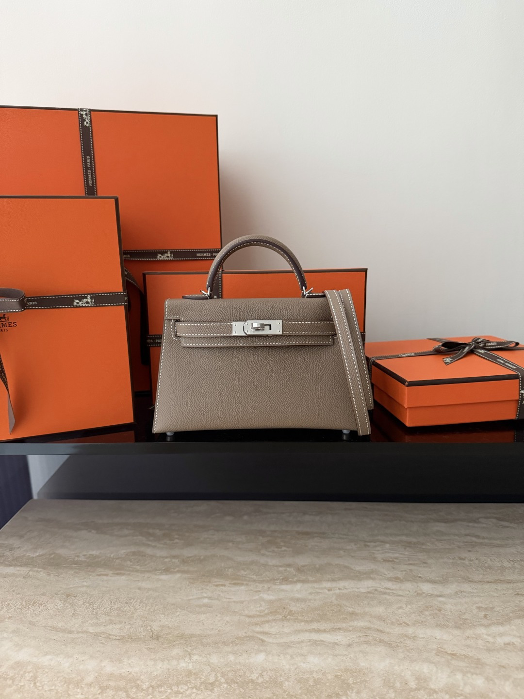 Mini Kelly II Ostrich Leather Bag - Nata Color with Gold Hardware